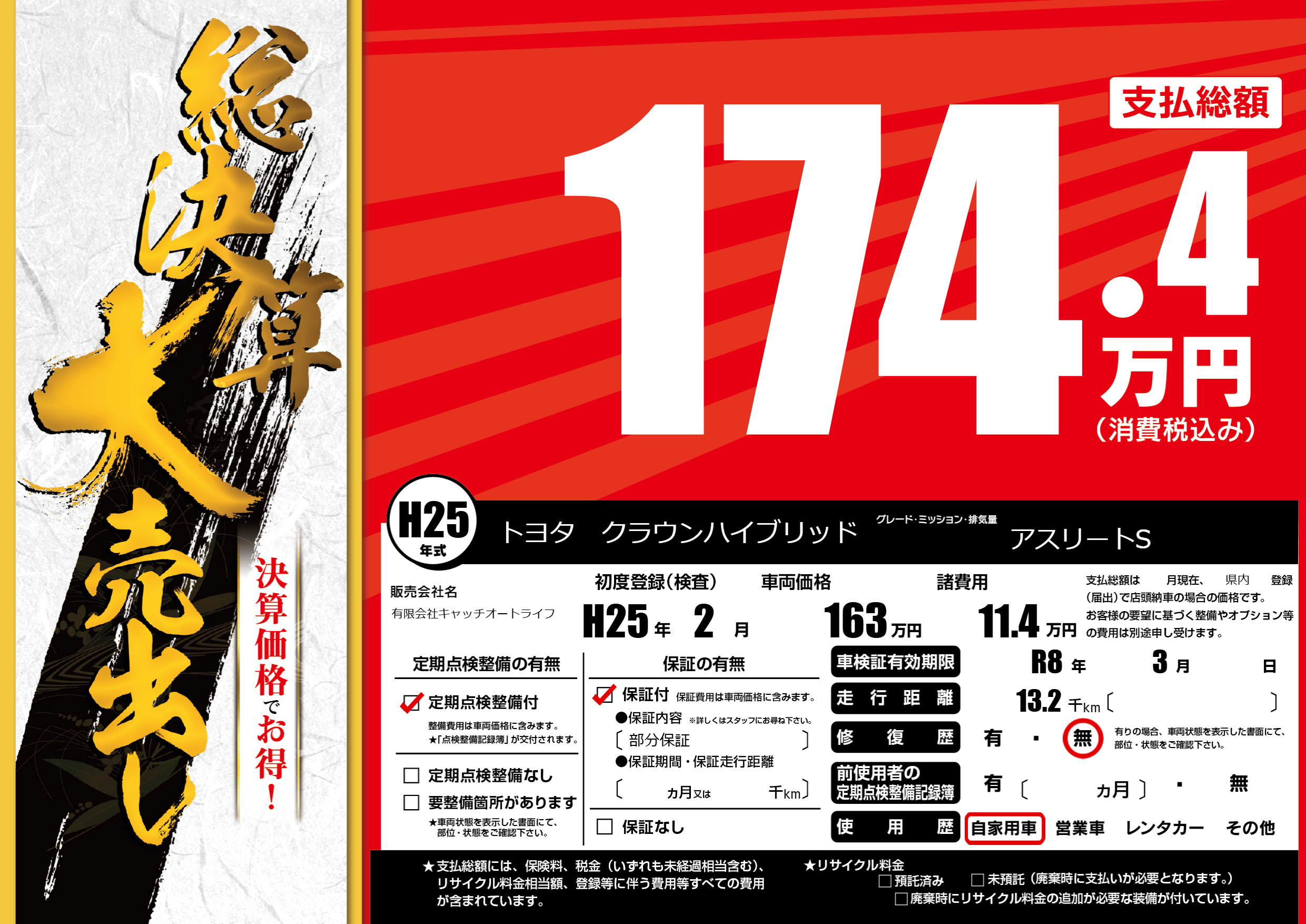 | 車検制限 | R8年 3月 - 日 | ||