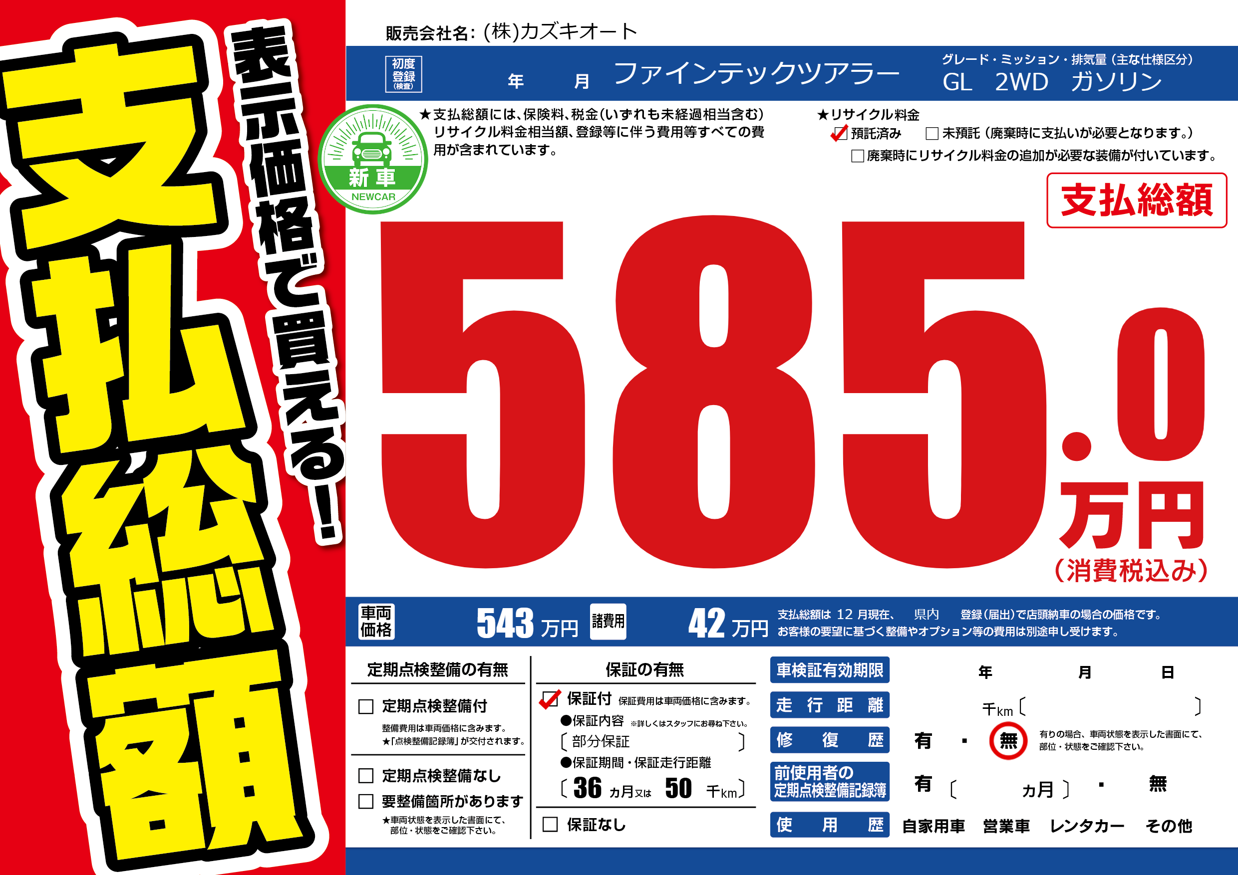 保証付き 保証内容(部分保証) 36ヶ月または(50)千kmまで |