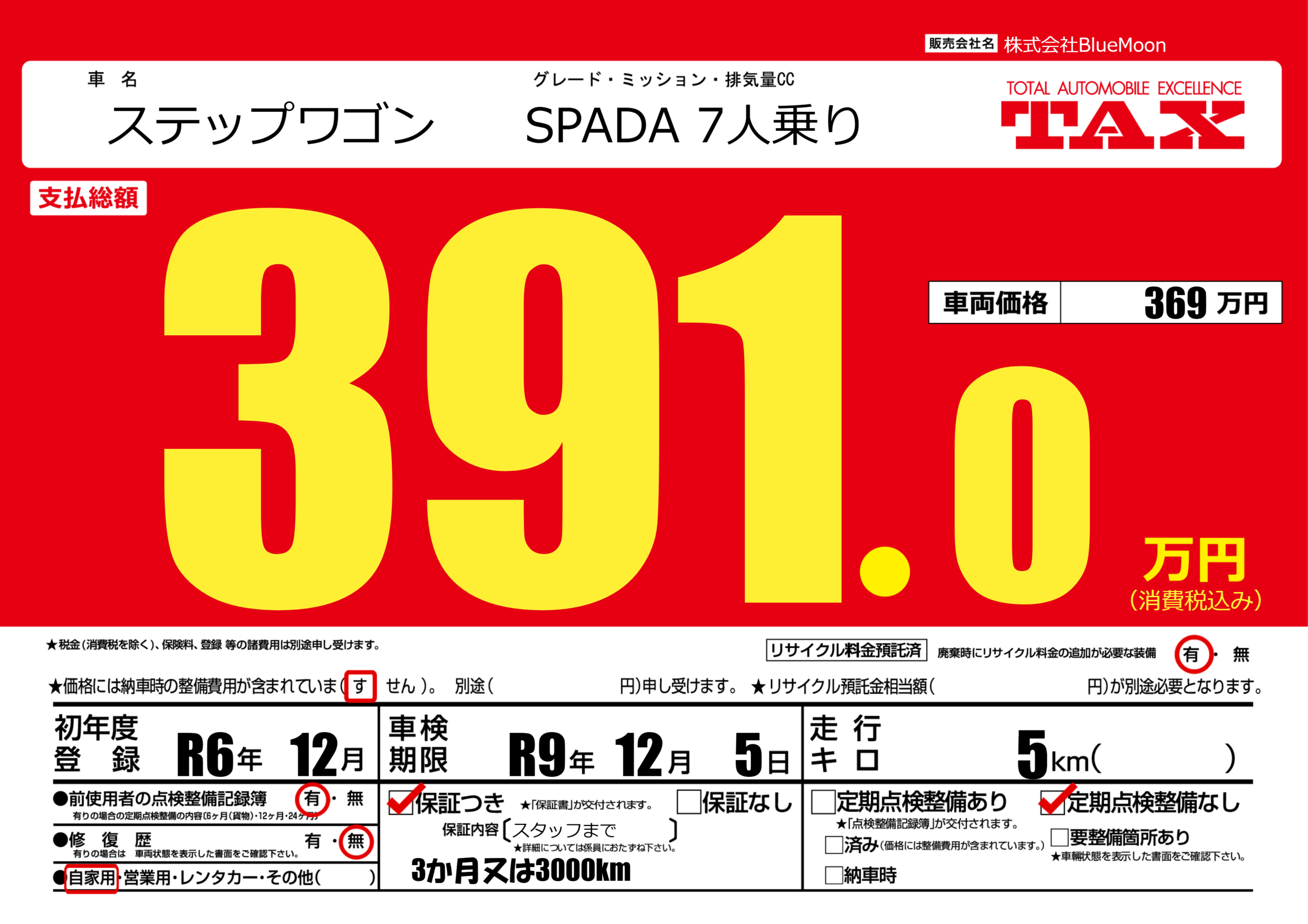 | 車名 | ステップワゴン | グレード ミッション 排気量 |