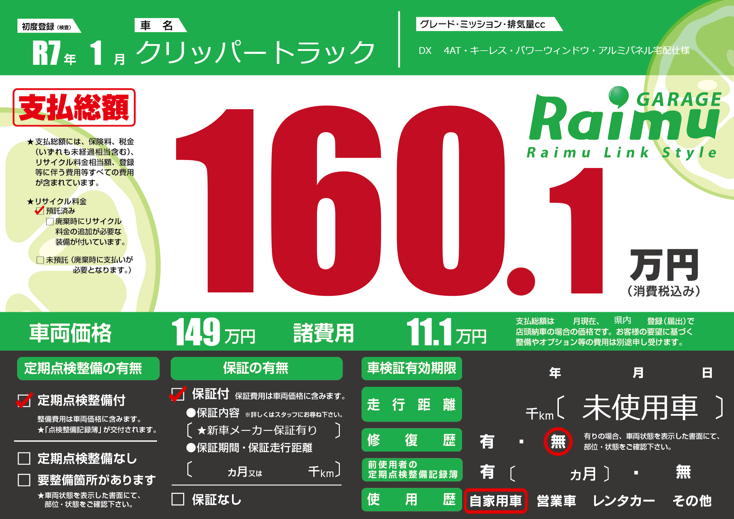 保証付き 保証内容(★新車メーカー保証有り) ヶ月または千km |