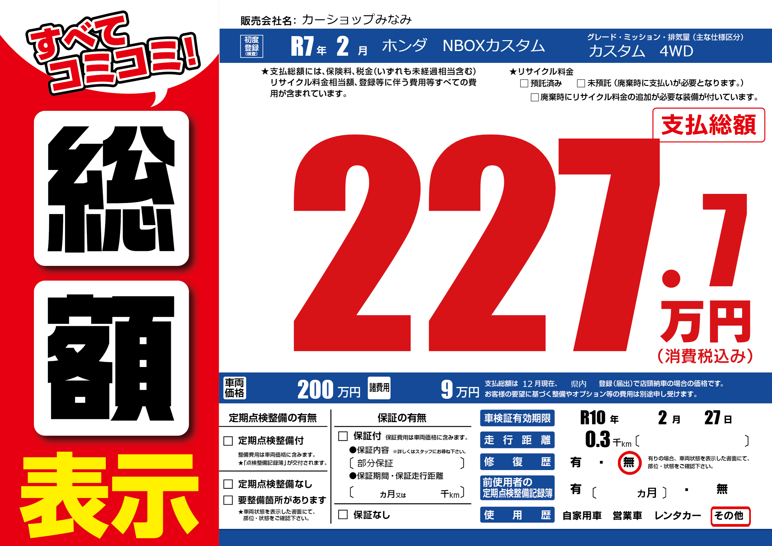 | 走行キロ | - | 初年度登録 | R7年2月 |