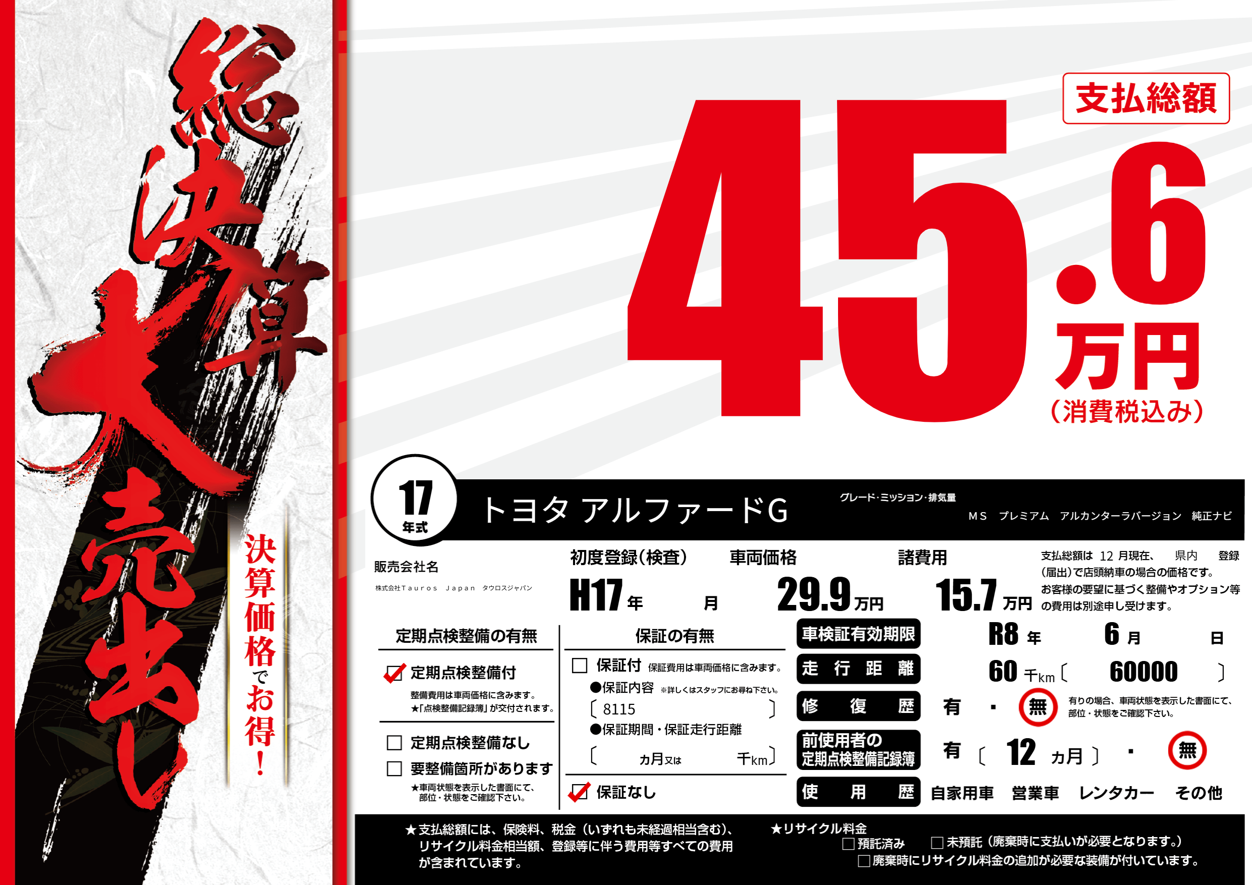 | 走行キロ | 6万km | ||