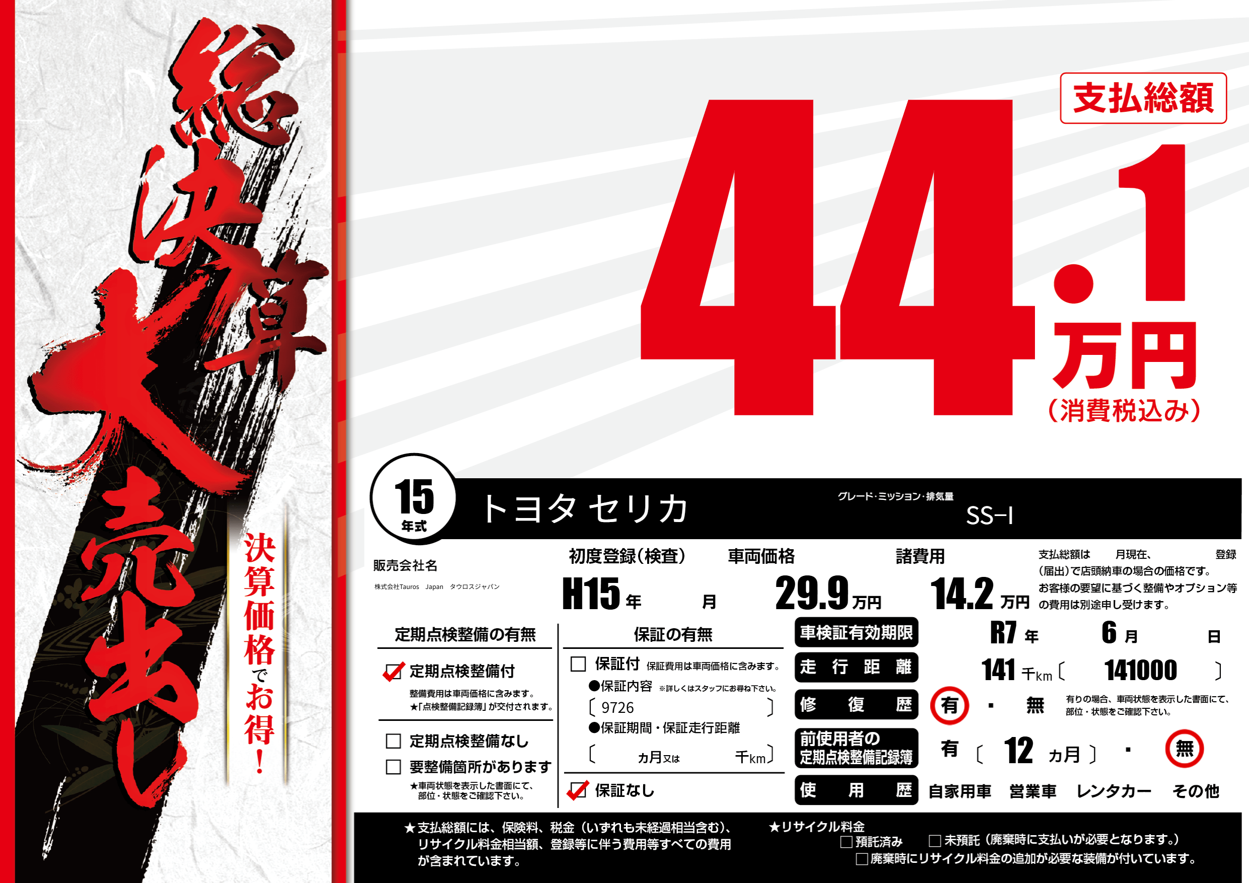 | 車名 | トヨタ セリカ | グレード ミッション 排気量 |