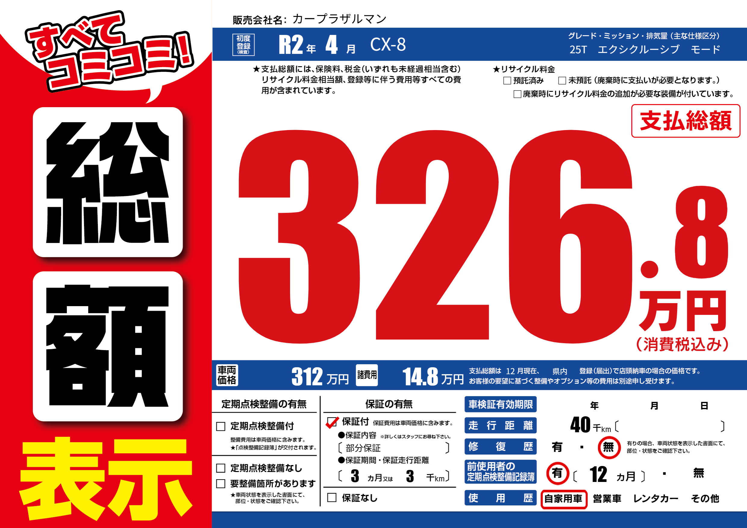 | 車名 | CX-8 | グレード ミッション 排気量 |