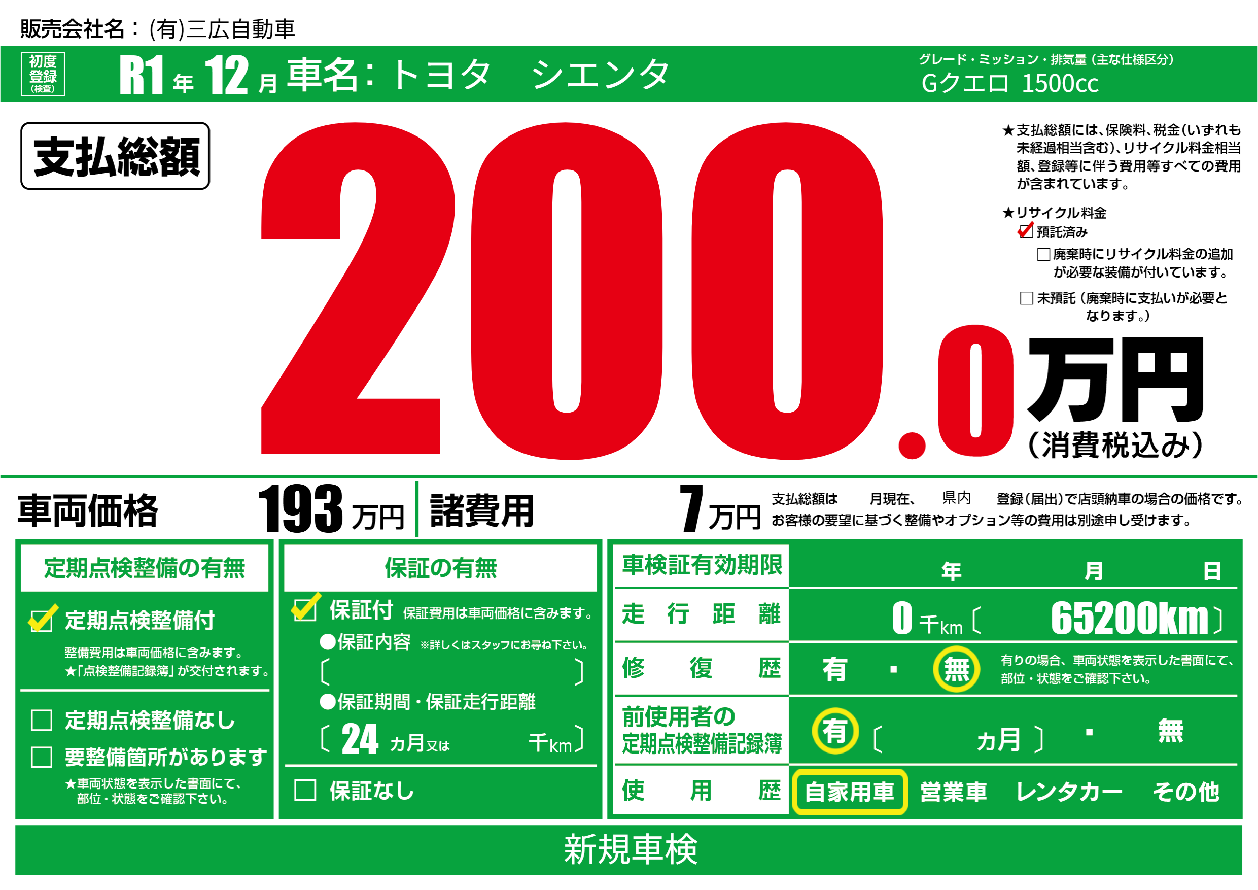 | 定期点検整備 | 定期点検整備あり | ||