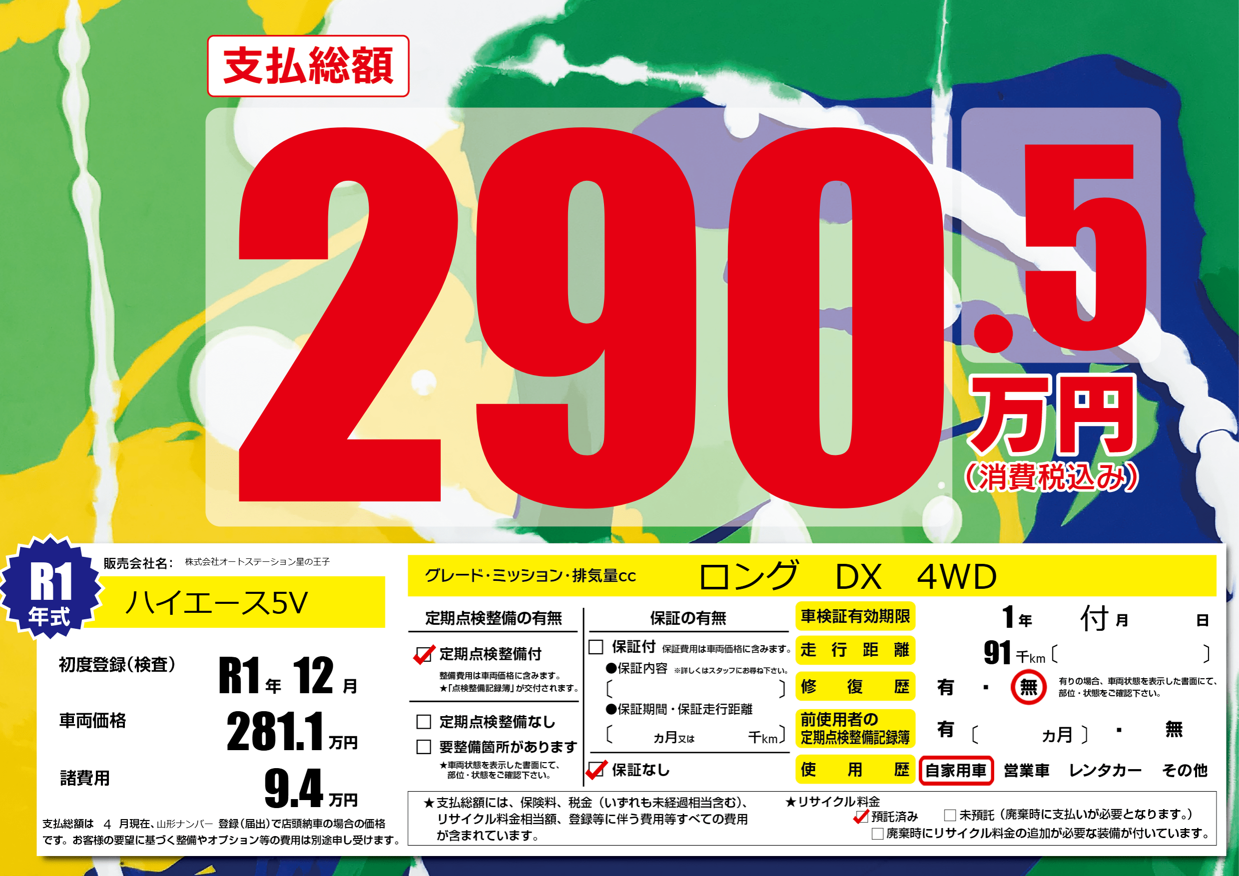 | 車名 | ハイエース5V | グレード ミッション 排気量 |