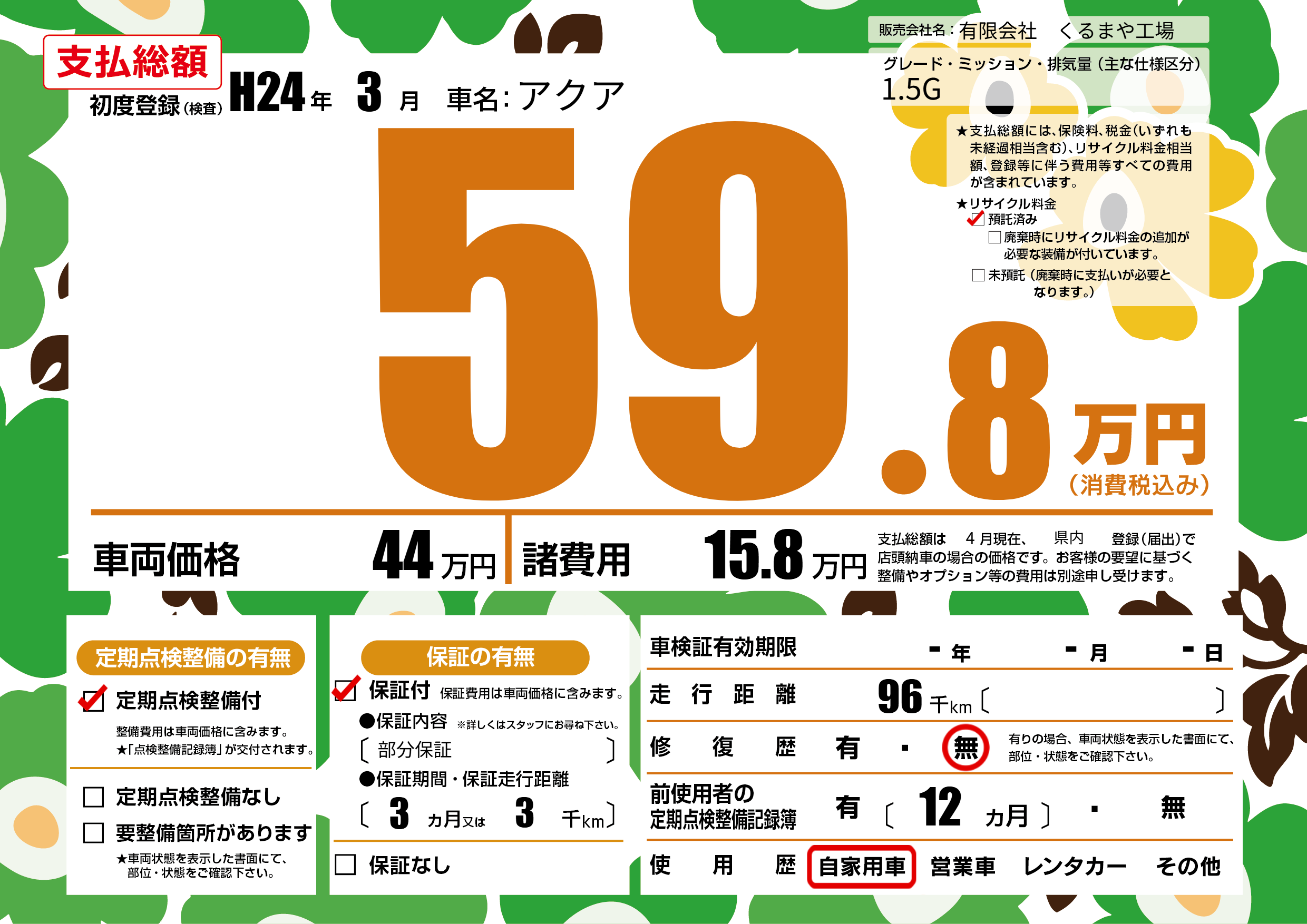 定期点検整備 | 定期点検整備あり |