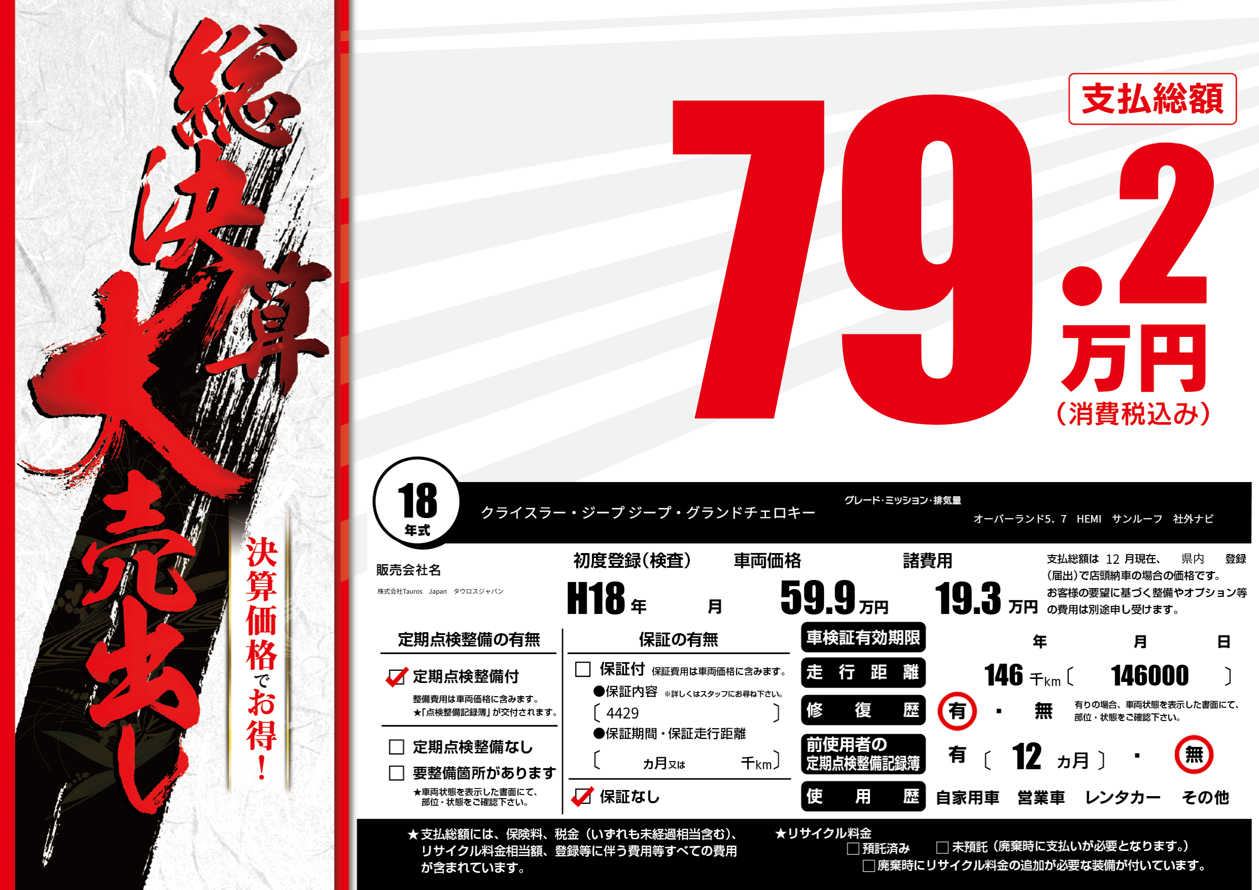 | 車名 | クライスラー・ジープ ジープ・グランドチェロキー | グレード ミッション 排気量 |