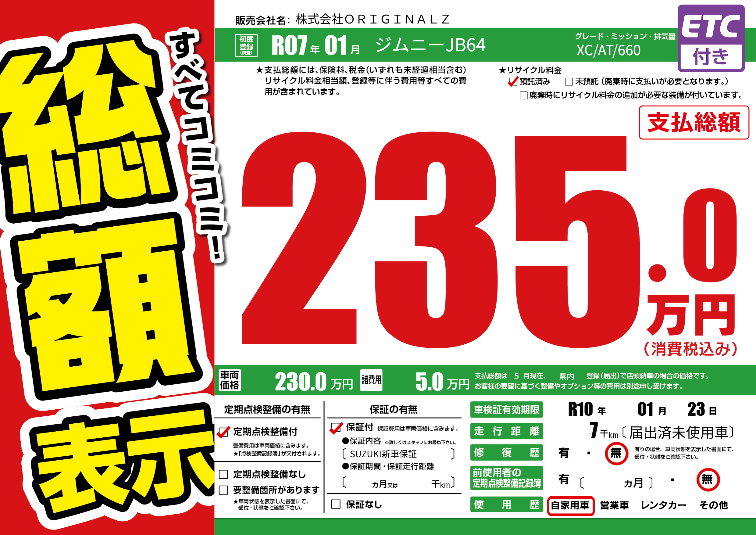 保証内容(SUZUKI新車保証) ヶ月または千km