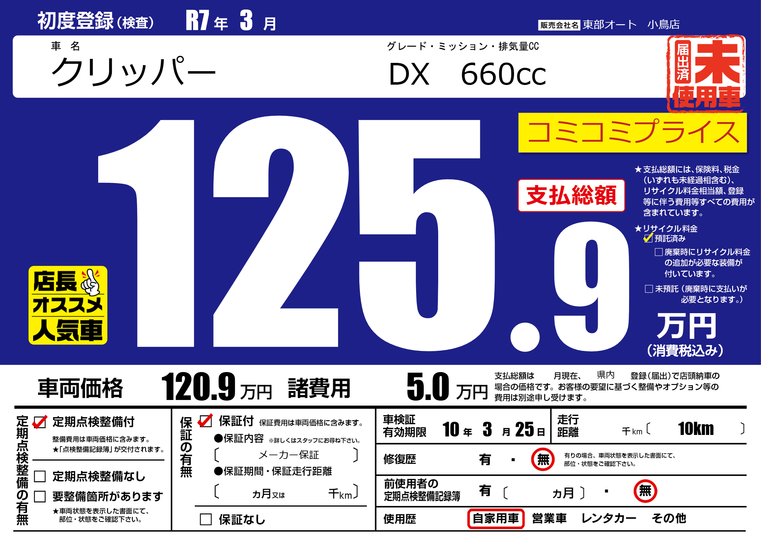 | 車検制限 | 10年 3月 25日 | ||