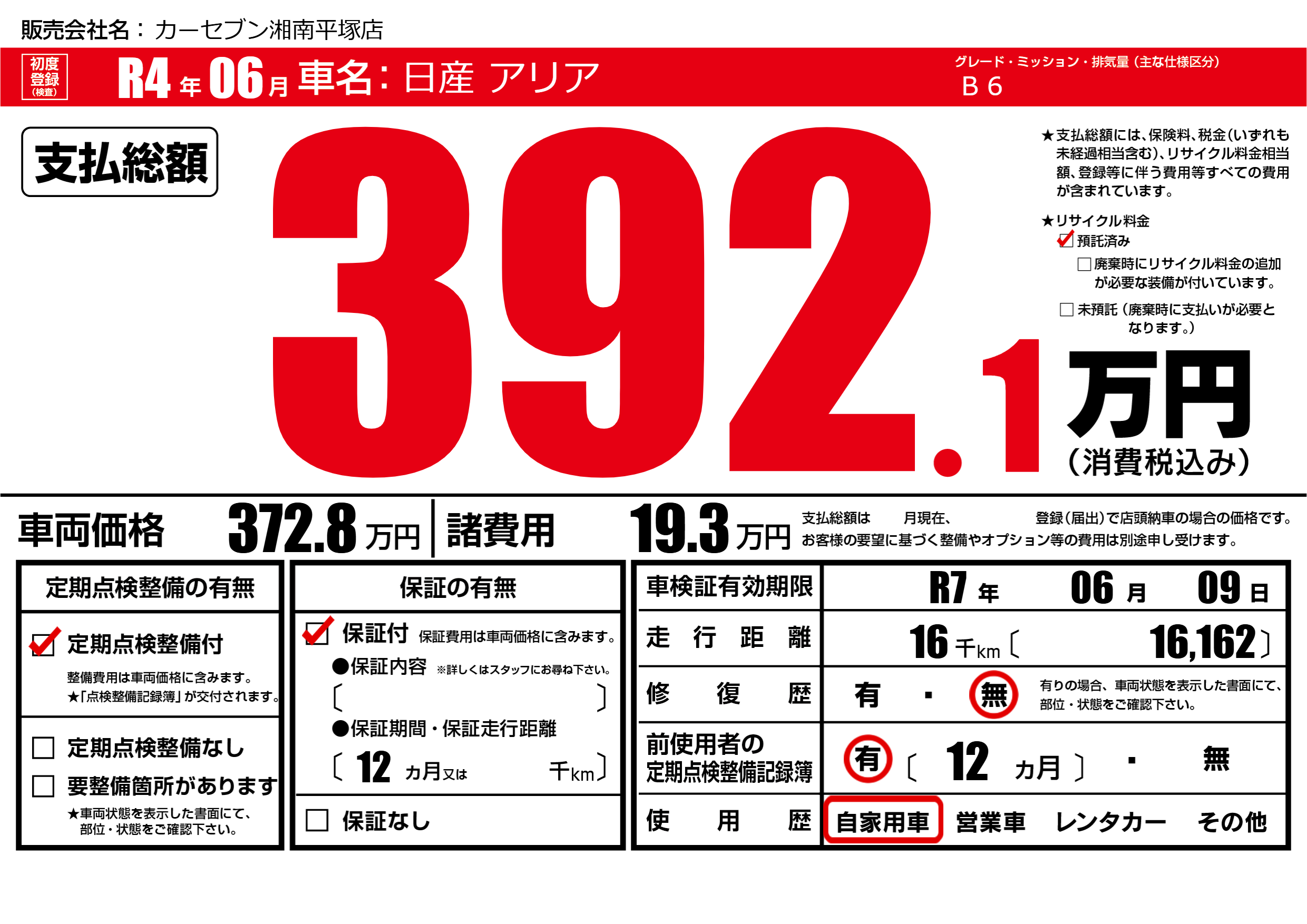 | 車検制限 | R7年 06月 09日 | ||