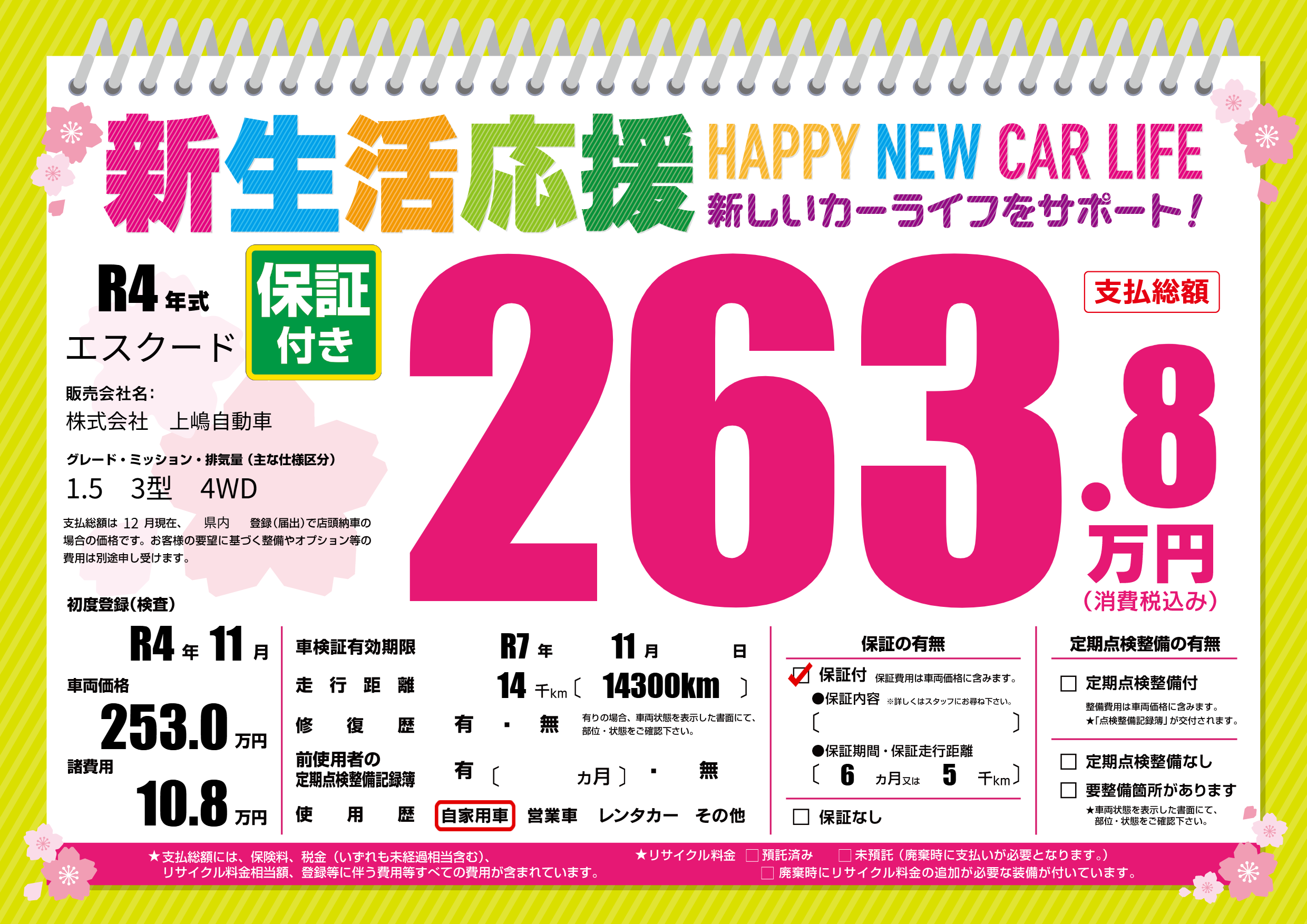| 走行キロ | 1.4万km | 初年度登録 | R4年11月 |
