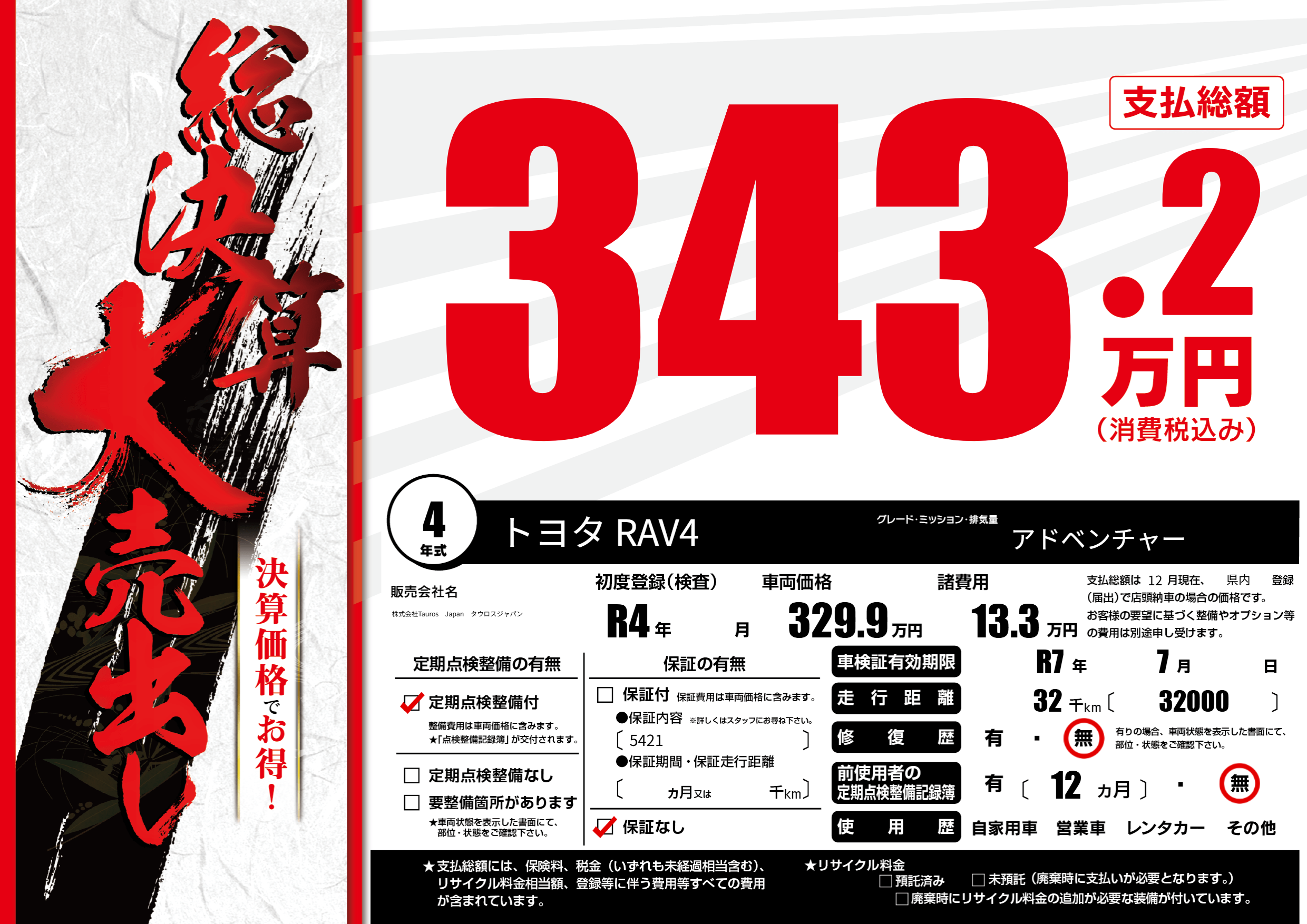 | 車検制限 | R7年 7月 - 日 | ||