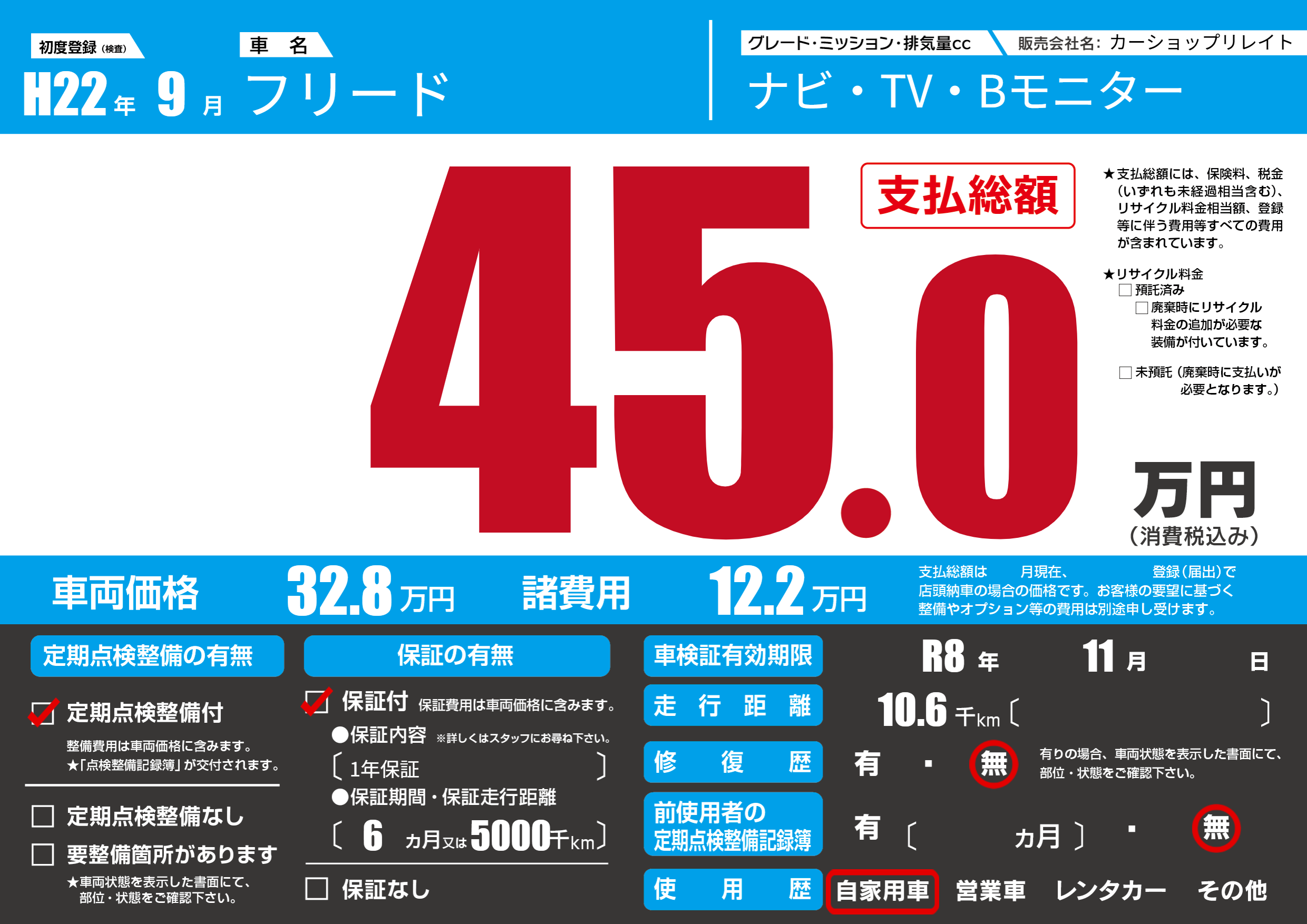 | 初年度登録 | H22年9月 | ||