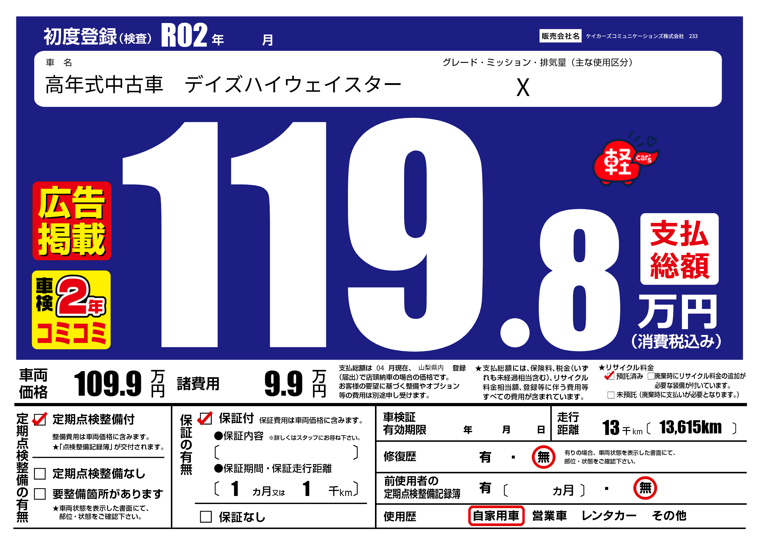 | 定期点検整備 | 定期点検整備あり | ||