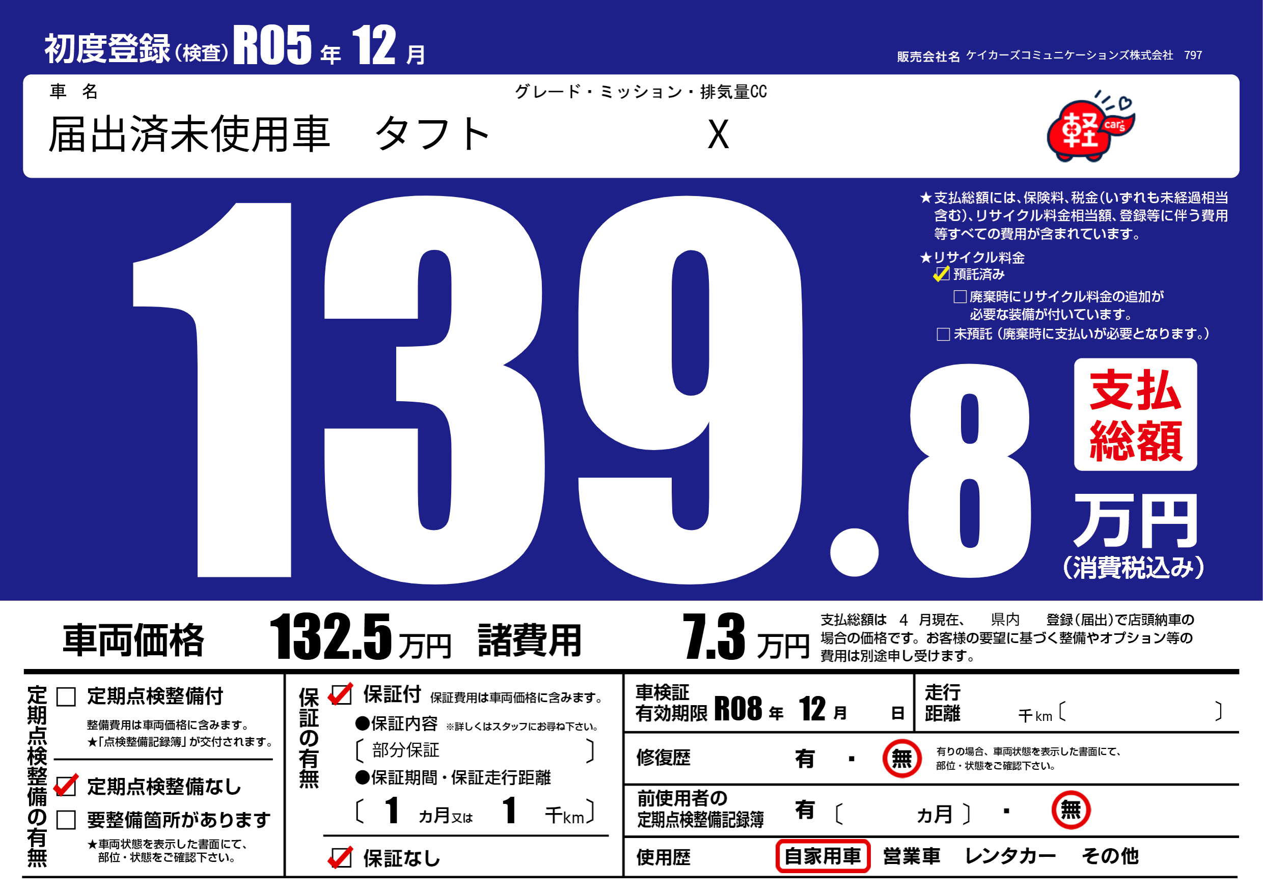 なし | 車検制限 | R08年12月---月 |