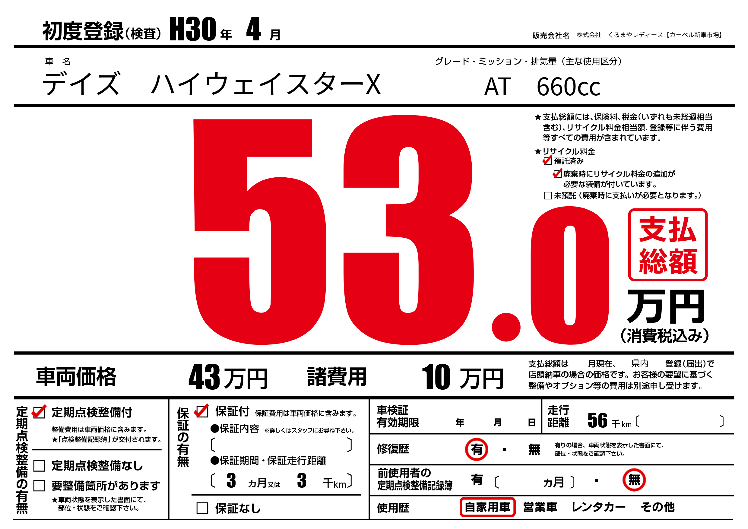 | 車名 | デイズ ハイウェイスターX | グレード ミッション 排気量 |