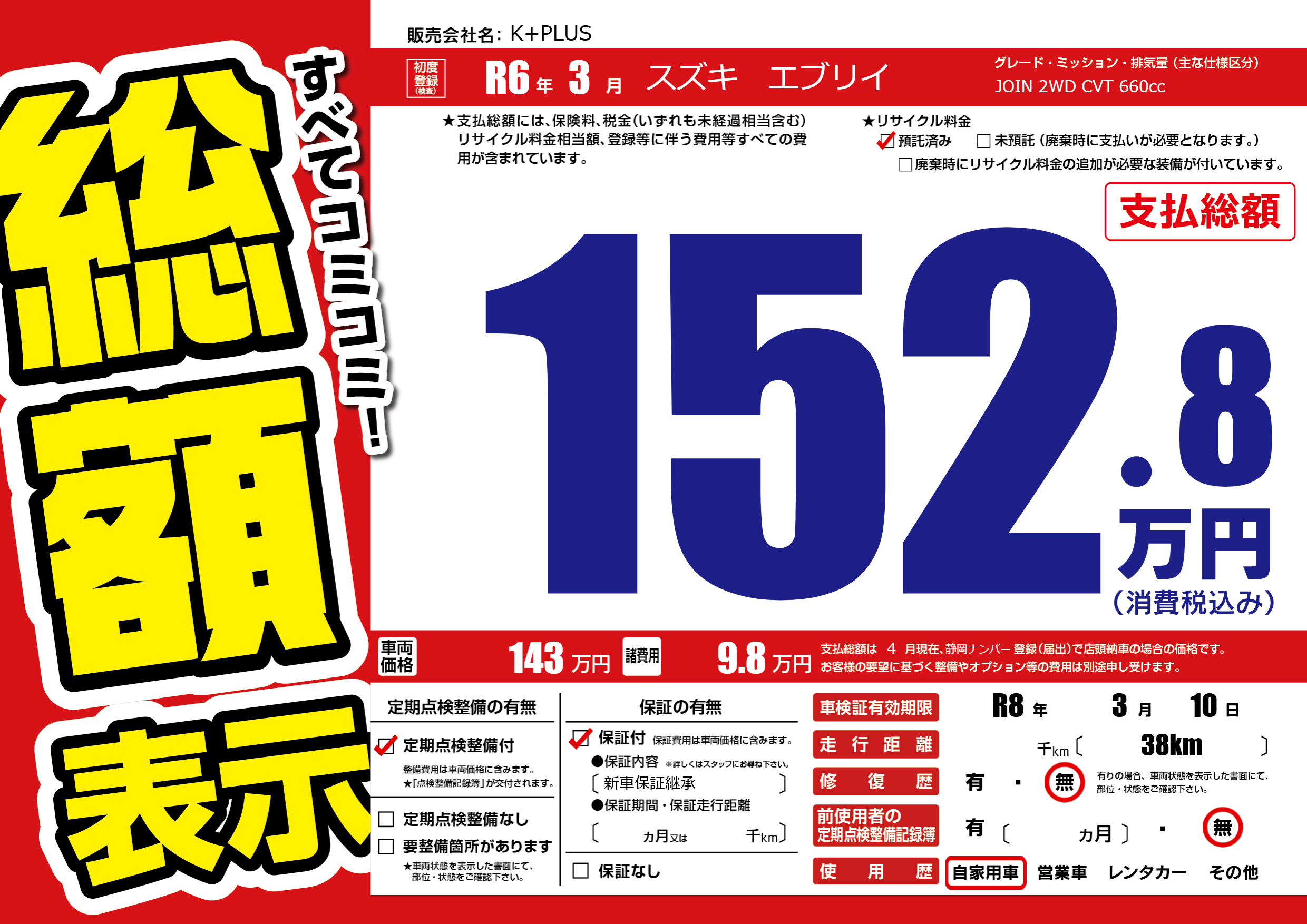 | 走行キロ | - | 初年度登録 | R6年3月 |