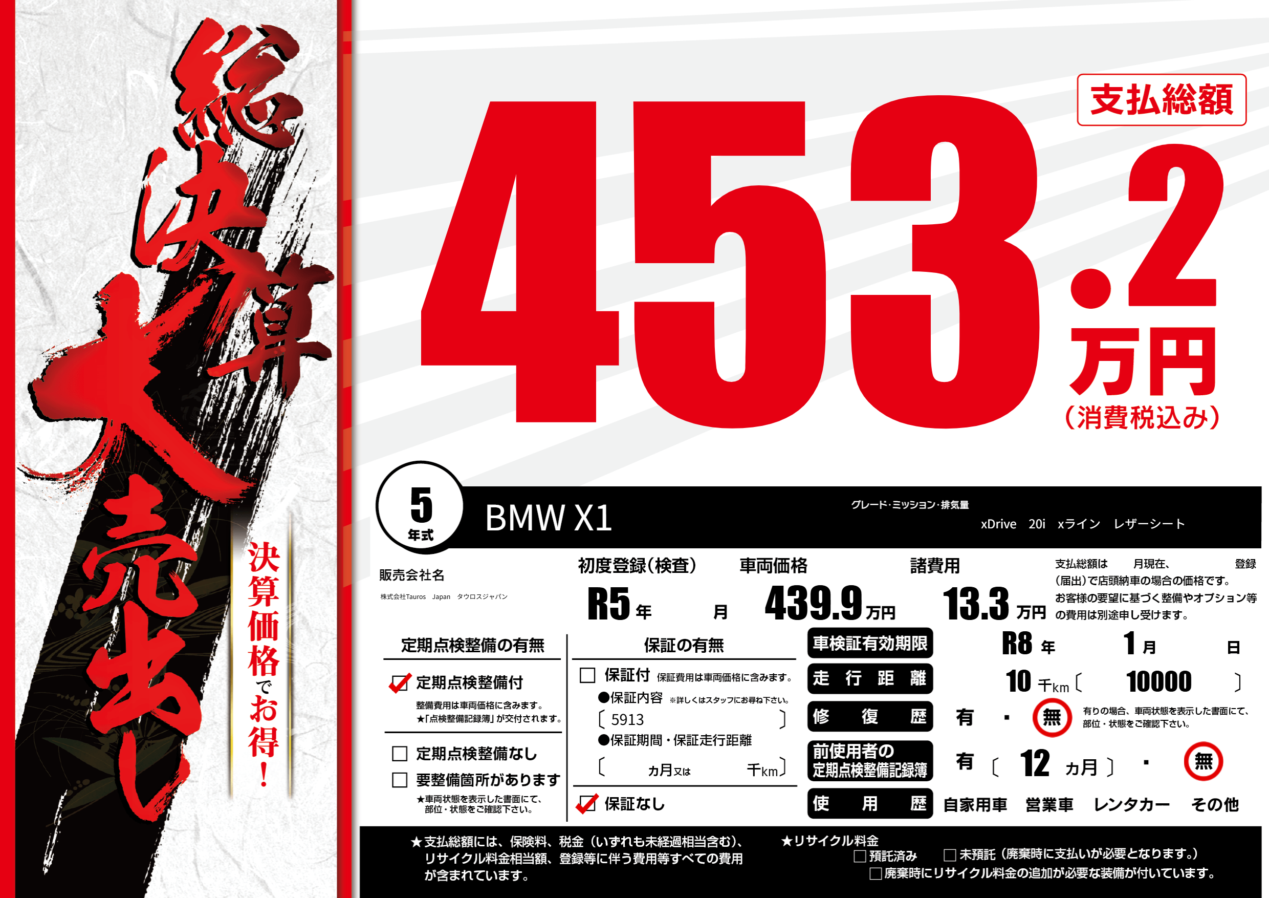 | 走行キロ | 1万km | 初年度登録 | R5年---月 |