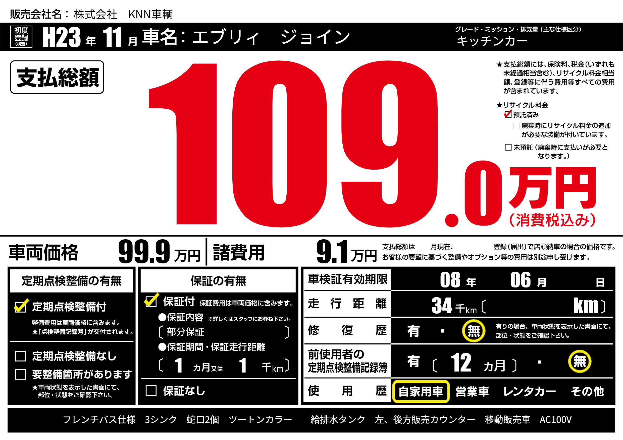 | 定期点検整備 | 定期点検整備あり | ||