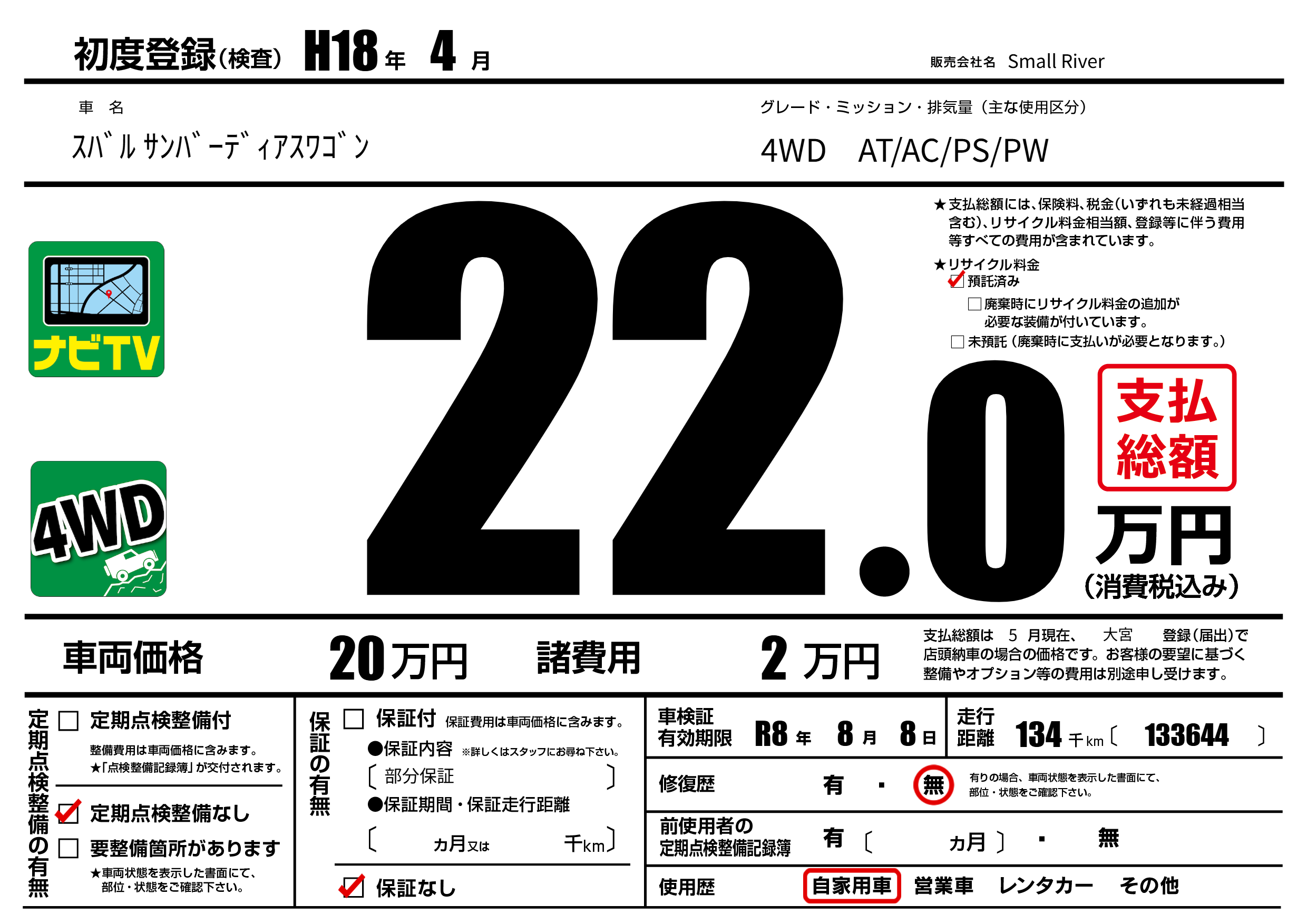 なし | 車検制限 | R8年8月8月 |