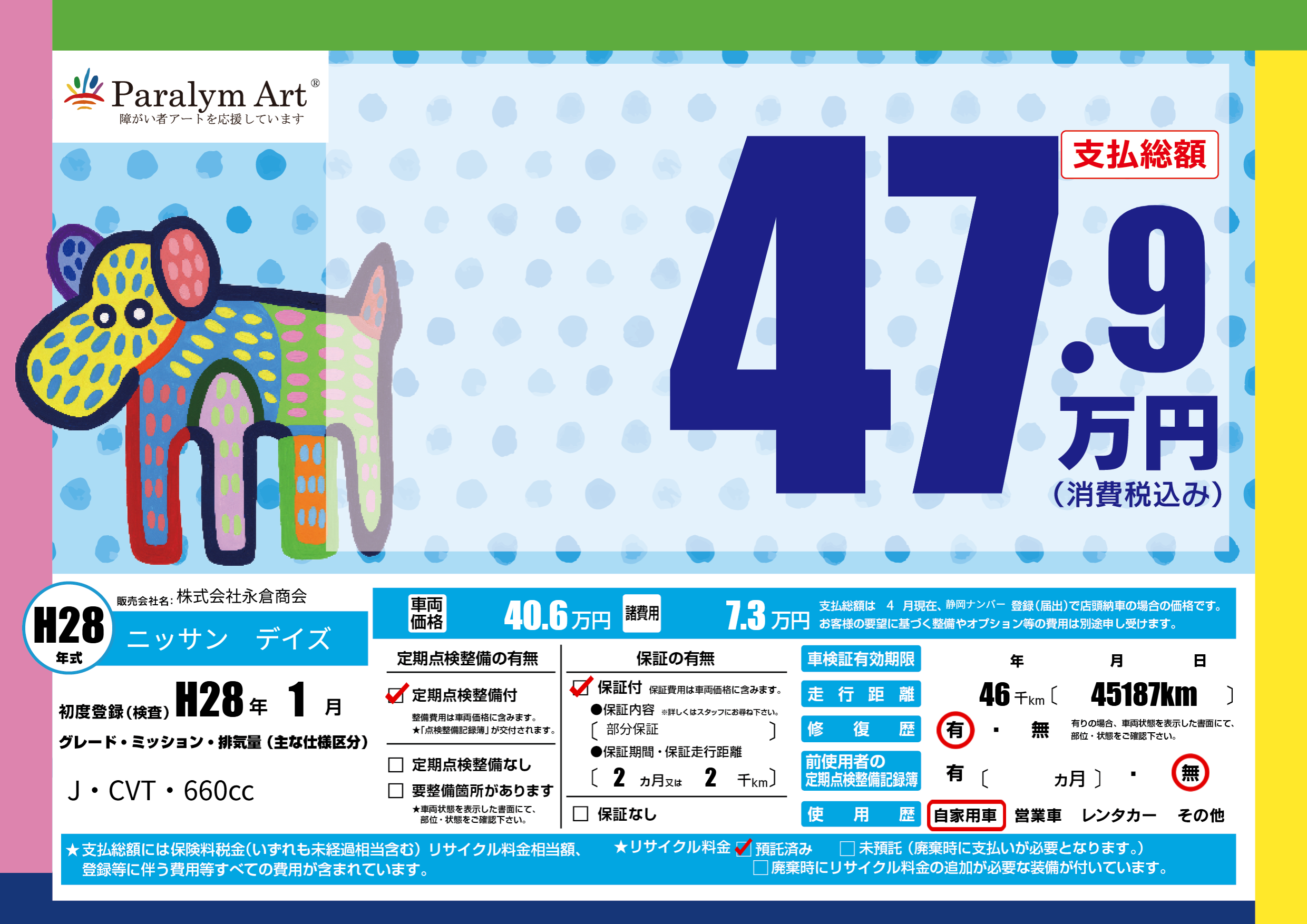 | 車名 | ニッサン デイズ | グレード ミッション 排気量 |