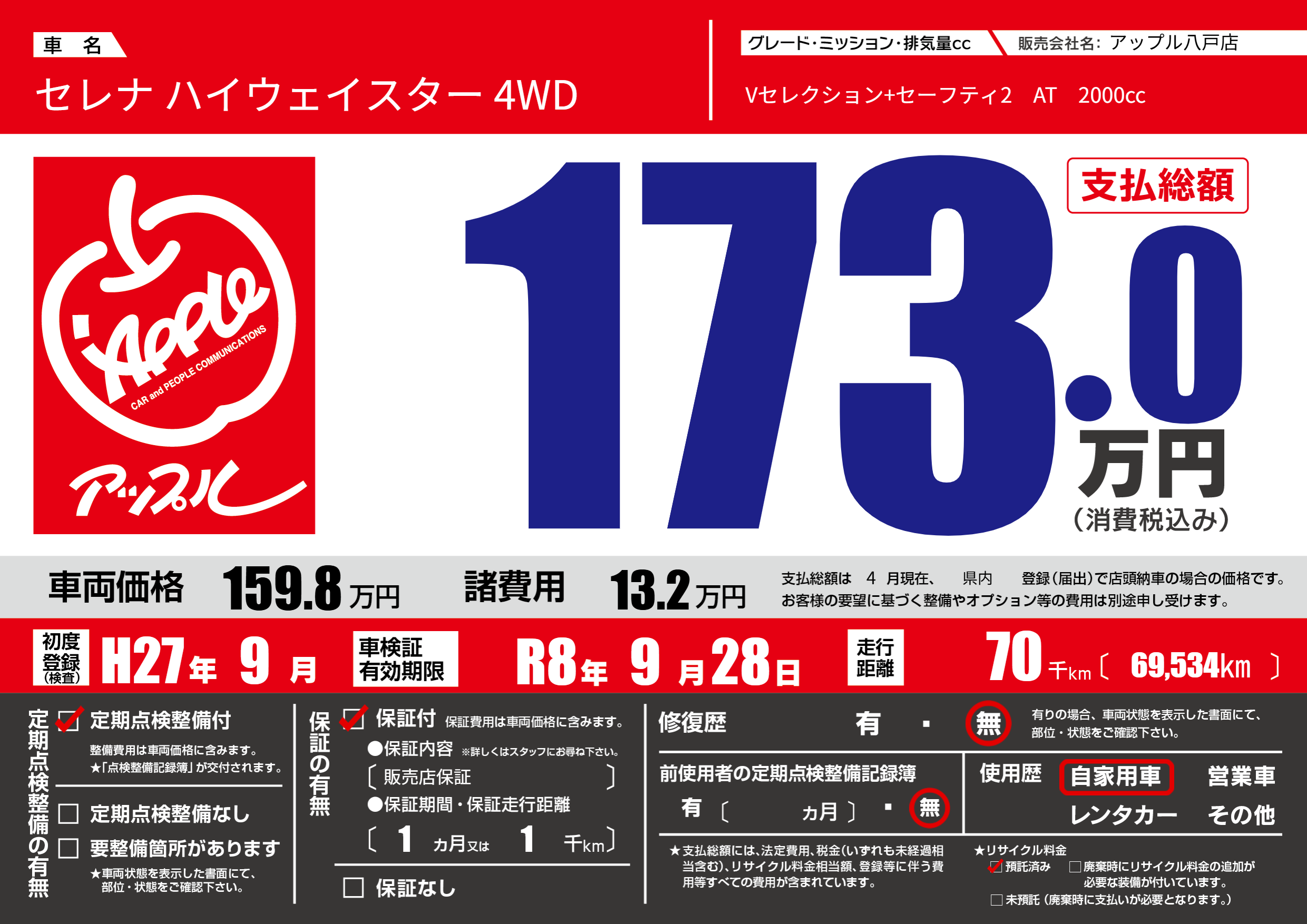 | 定期点検整備 | 定期点検整備あり | ||