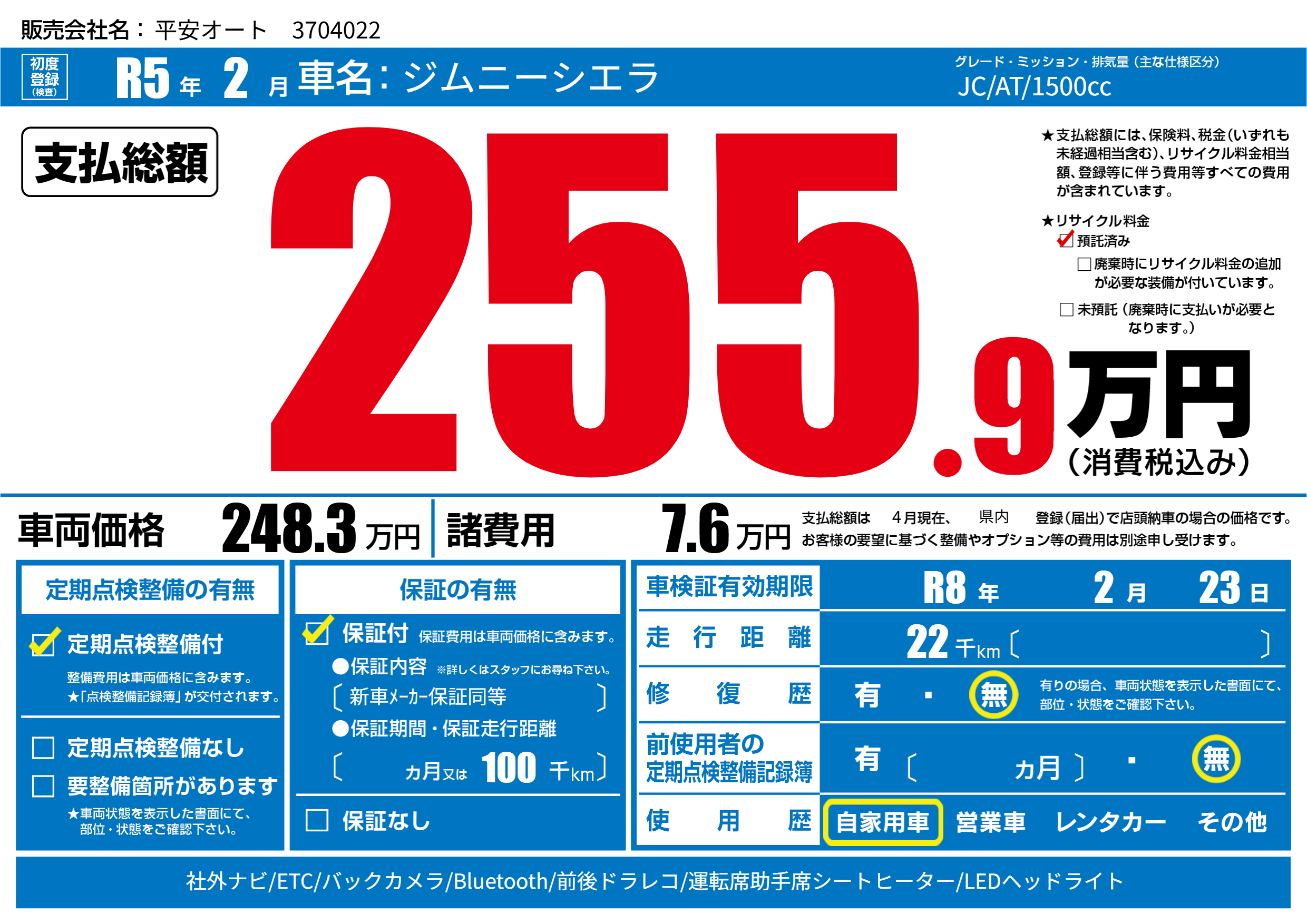 | 車検制限 | R8年 2月 23日 | ||