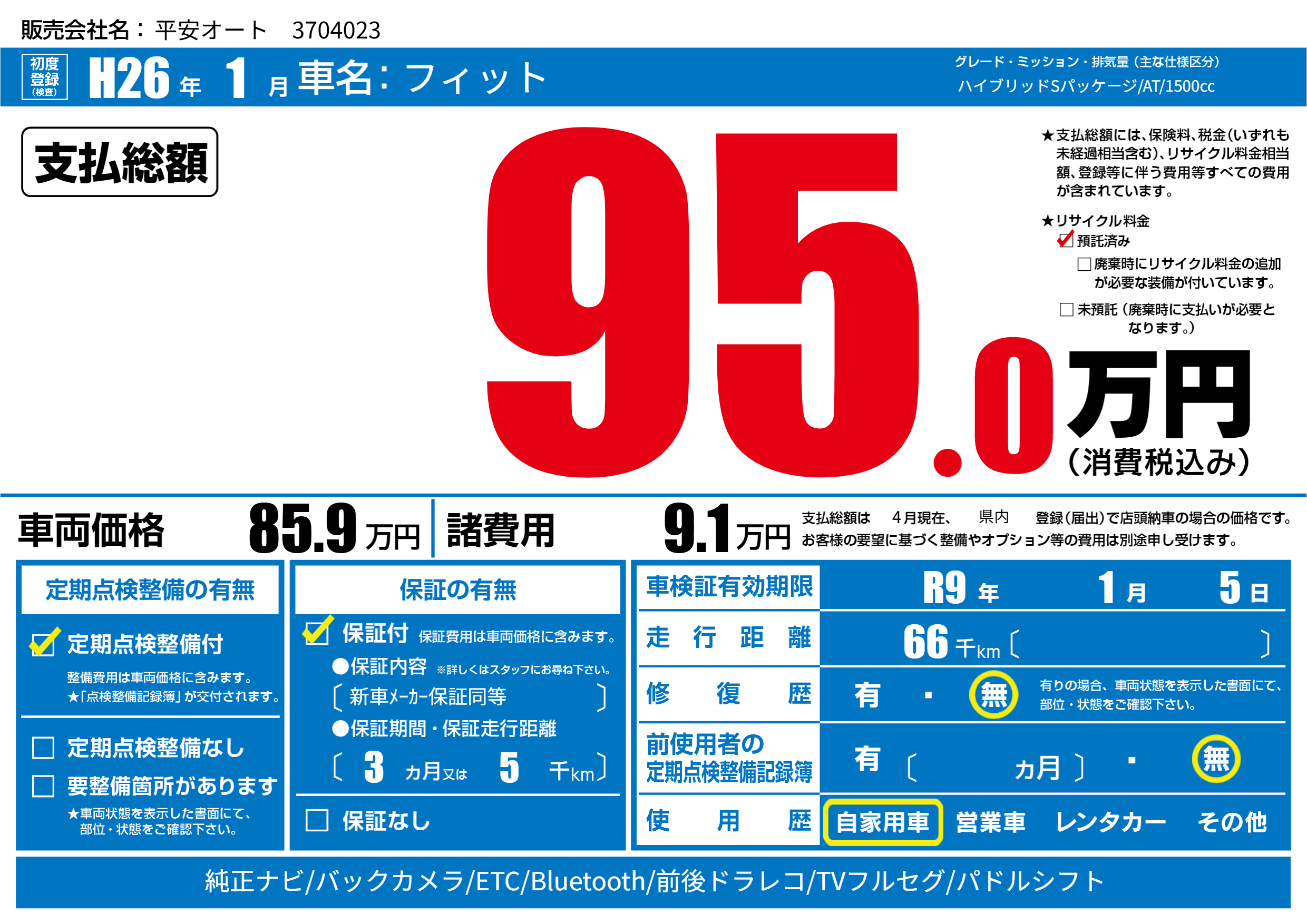 なし | 車検制限 | R9年1月5月 |