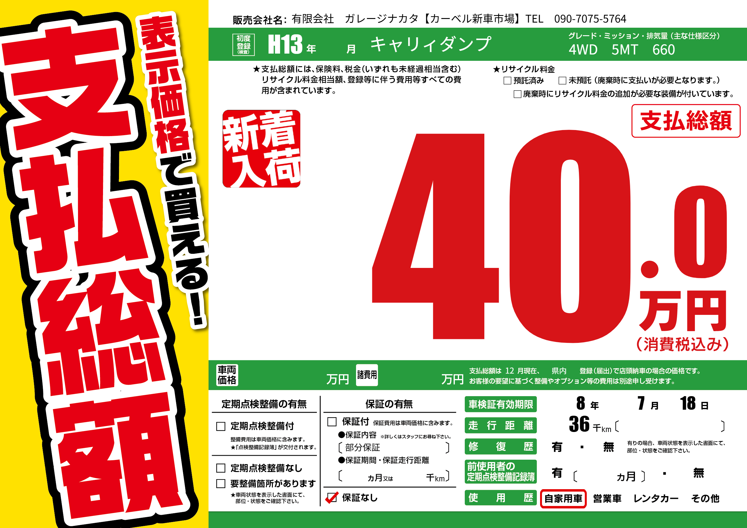 | 車名 | キャリィダンプ | グレード ミッション 排気量 |