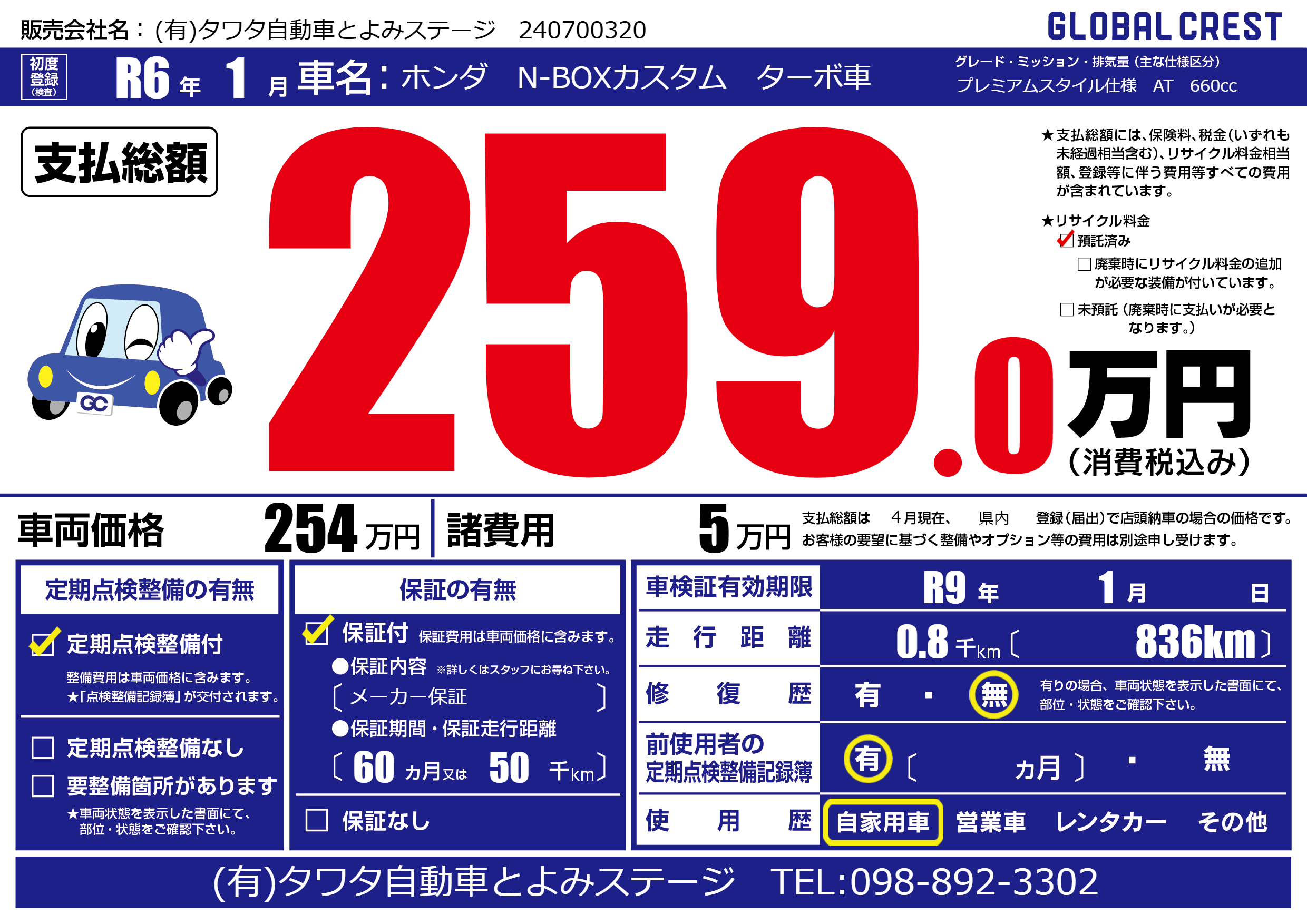 | 車検制限 | R9年 1月 - 日 | ||