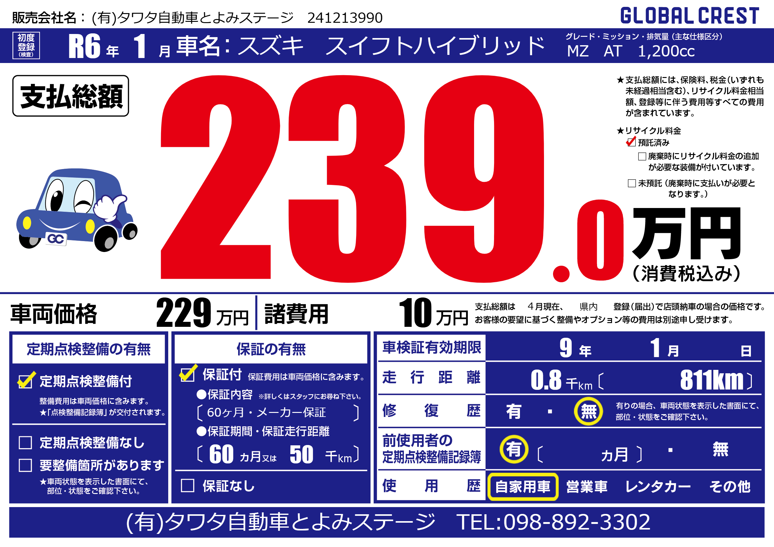 | 車名 | スズキ スイフトハイブリッド | グレード ミッション 排気量 |