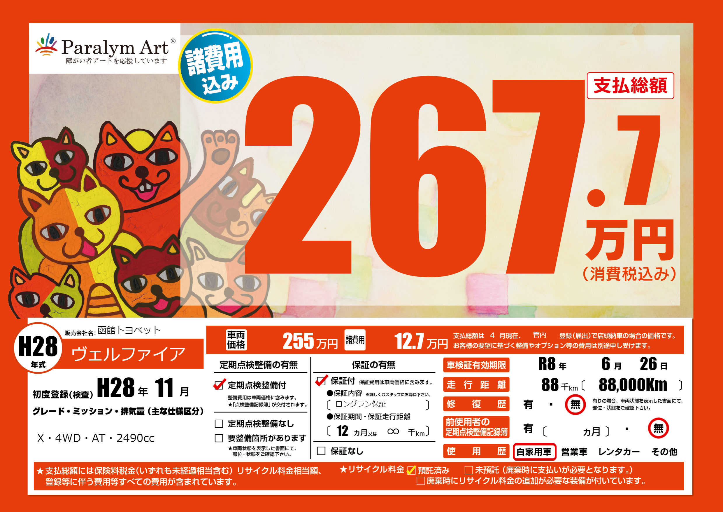 | 走行キロ | 8.8万km | 初年度登録 | H28年11月 |
