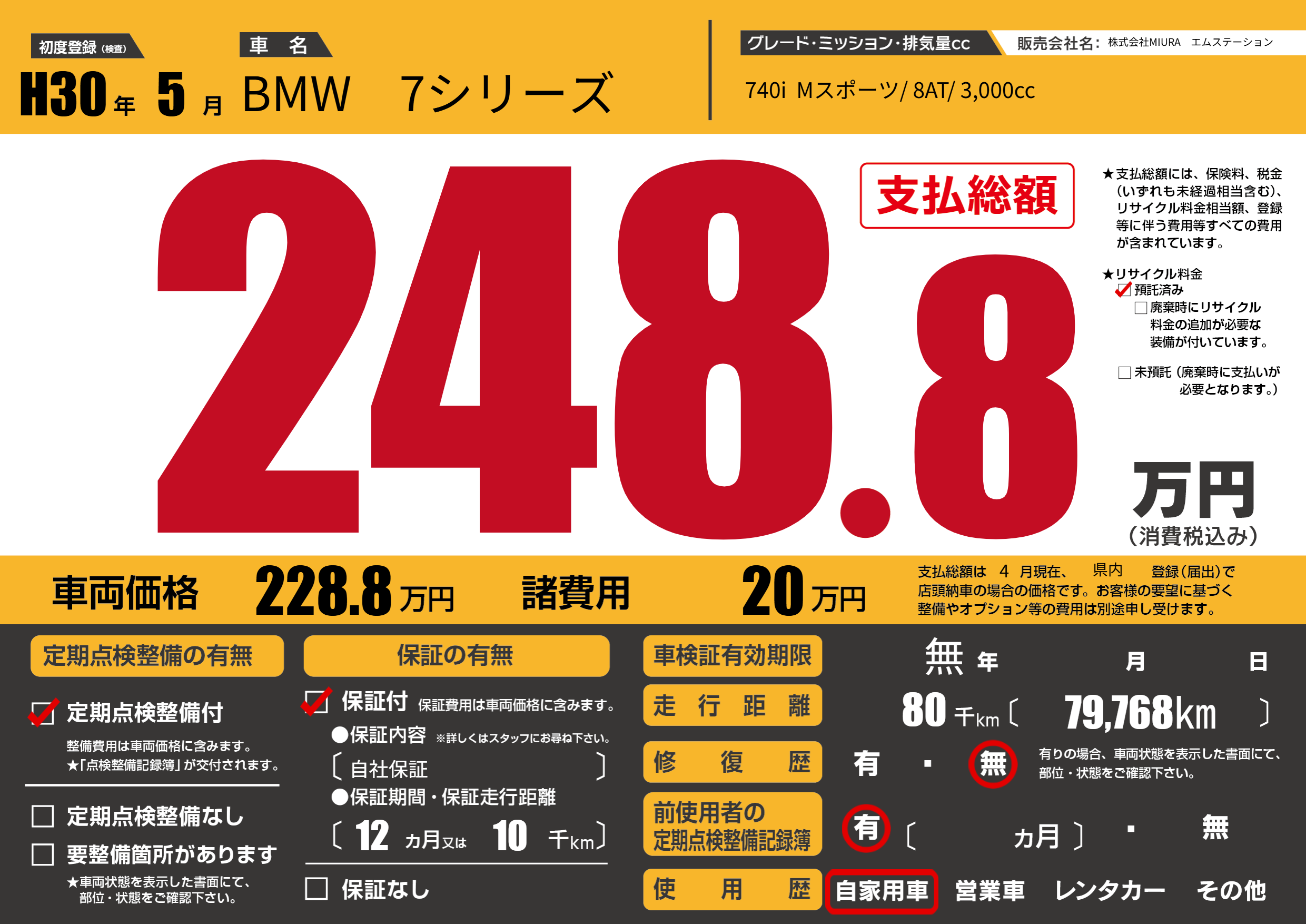 740i Mスポーツ/ 8AT/ 3,000cc |