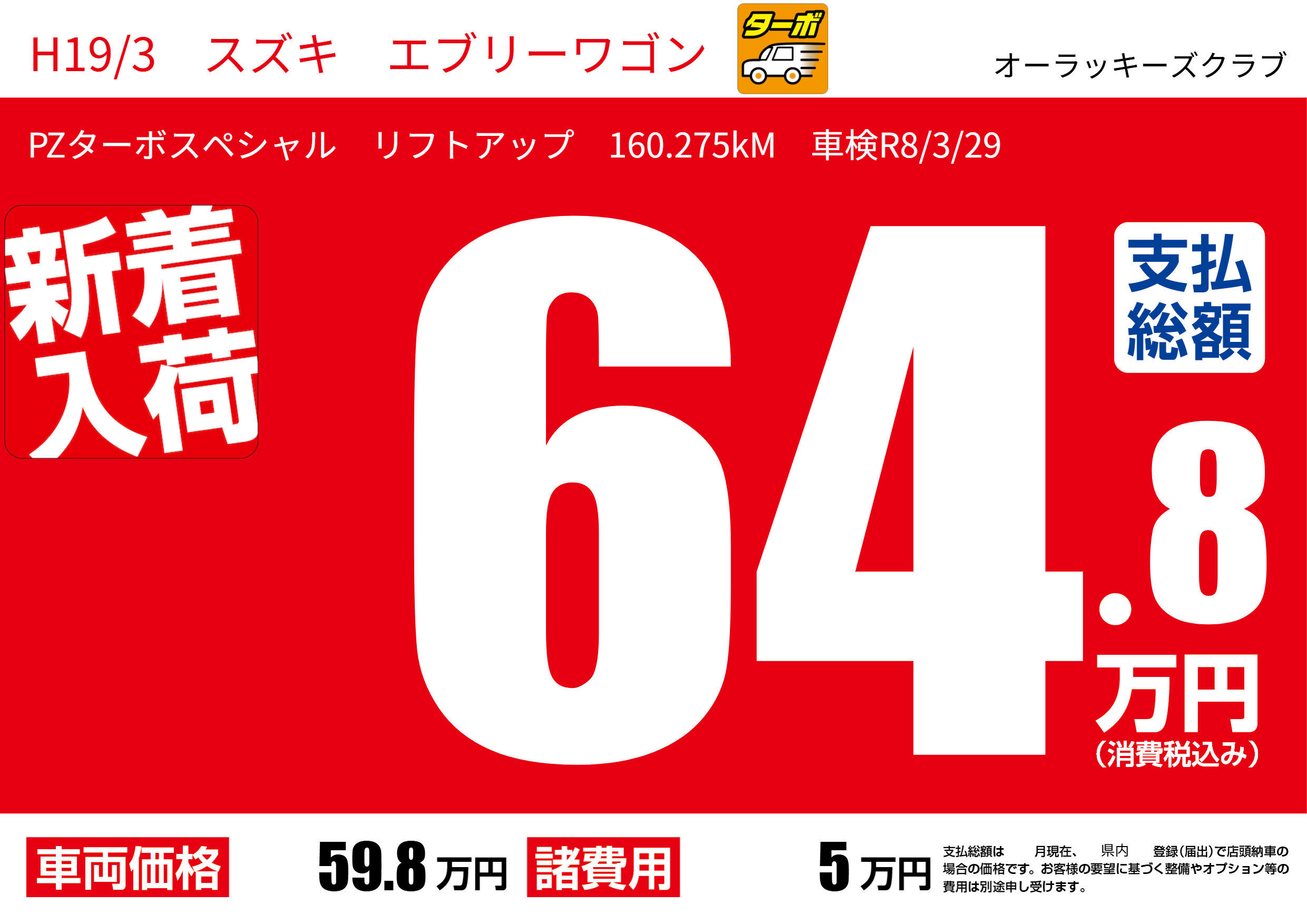 PZターボスペシャル リフトアップ 160.275kM 車検R8/3/29 |