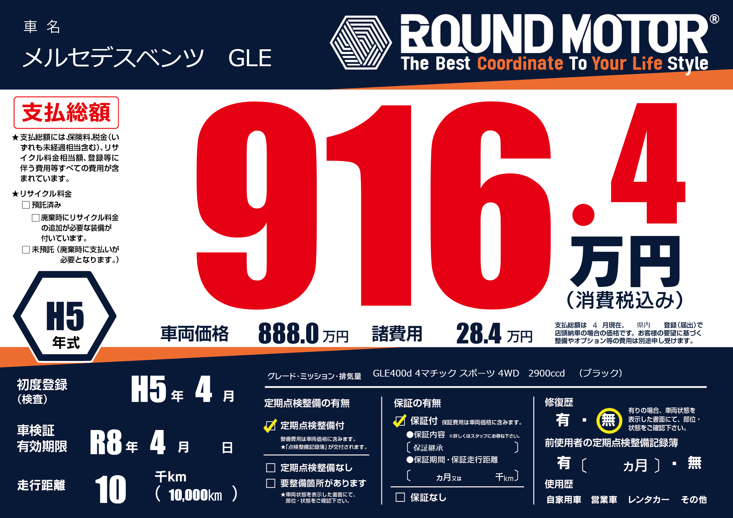 | 車名 | メルセデスベンツ GLE | グレード ミッション 排気量 |