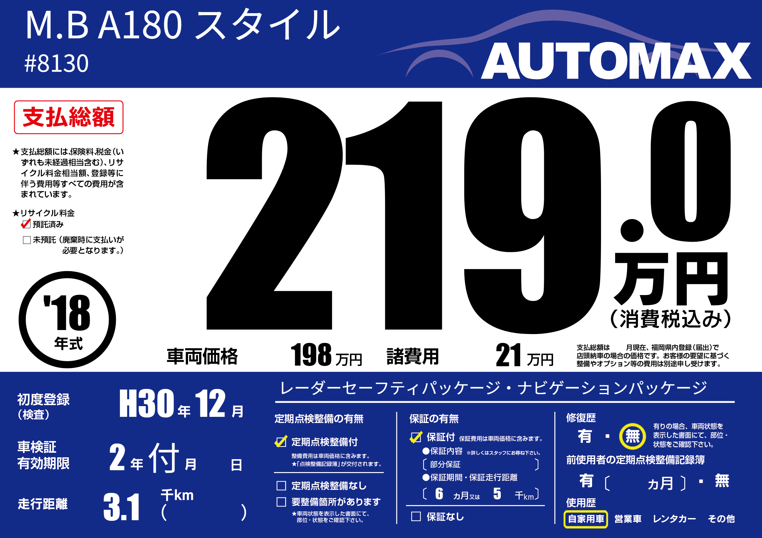 | 初年度登録 | H30年12月 | ||