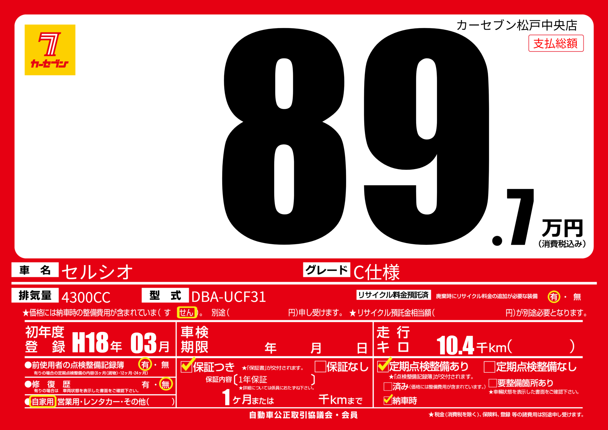 | 車名 | セルシオ | グレード ミッション 排気量 |