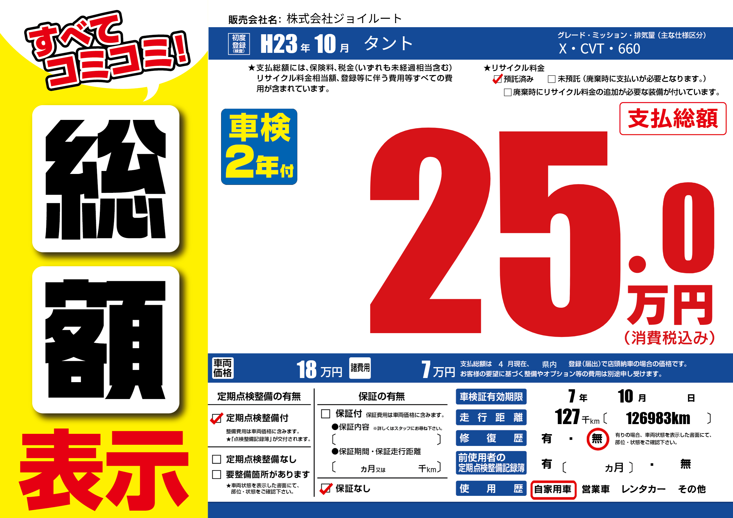 | 走行キロ | 12.7万km | 初年度登録 | H23年10月 |