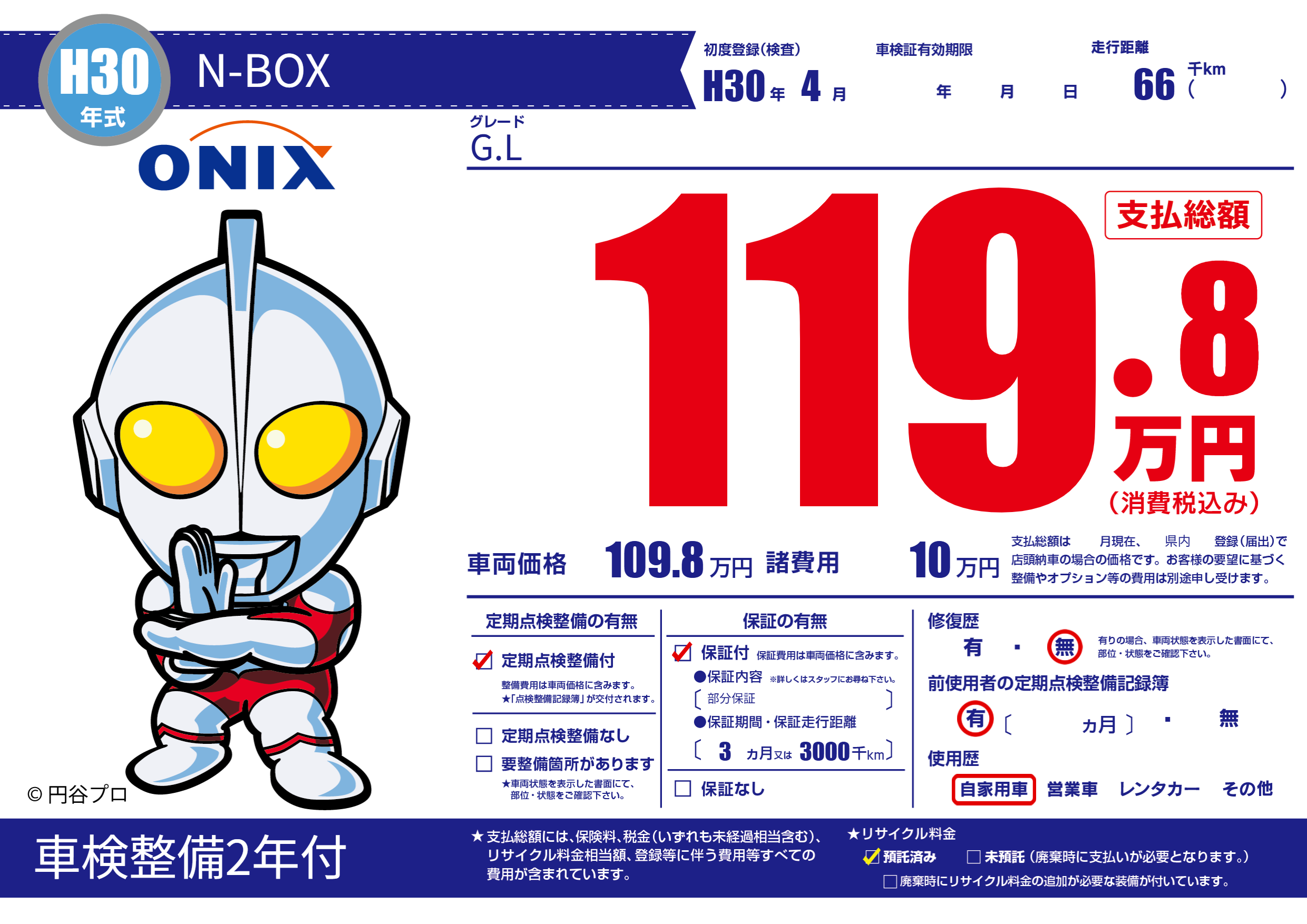 | 車名 | N-BOX | グレード ミッション 排気量 |