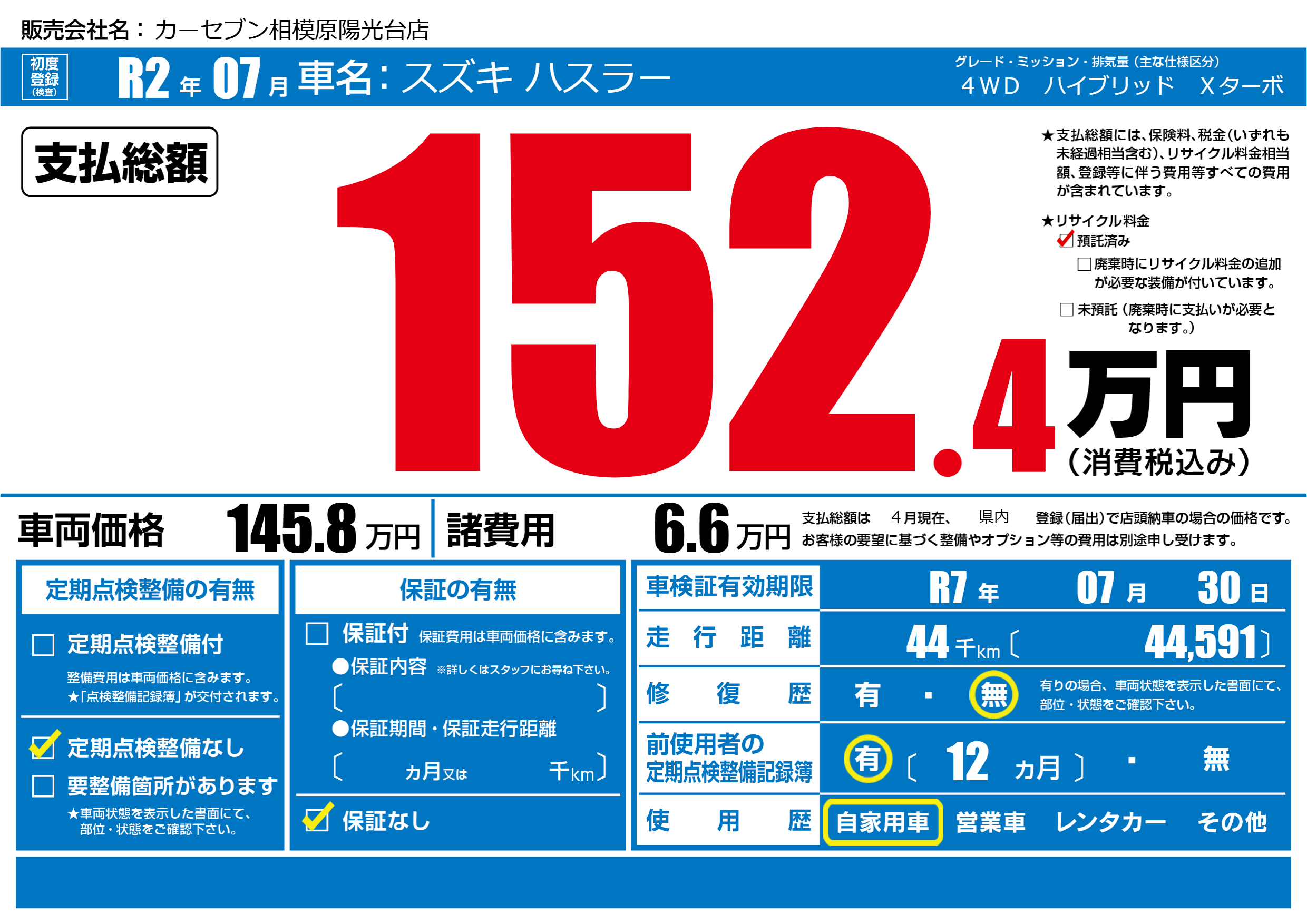なし | 車検制限 | R7年07月30月 |