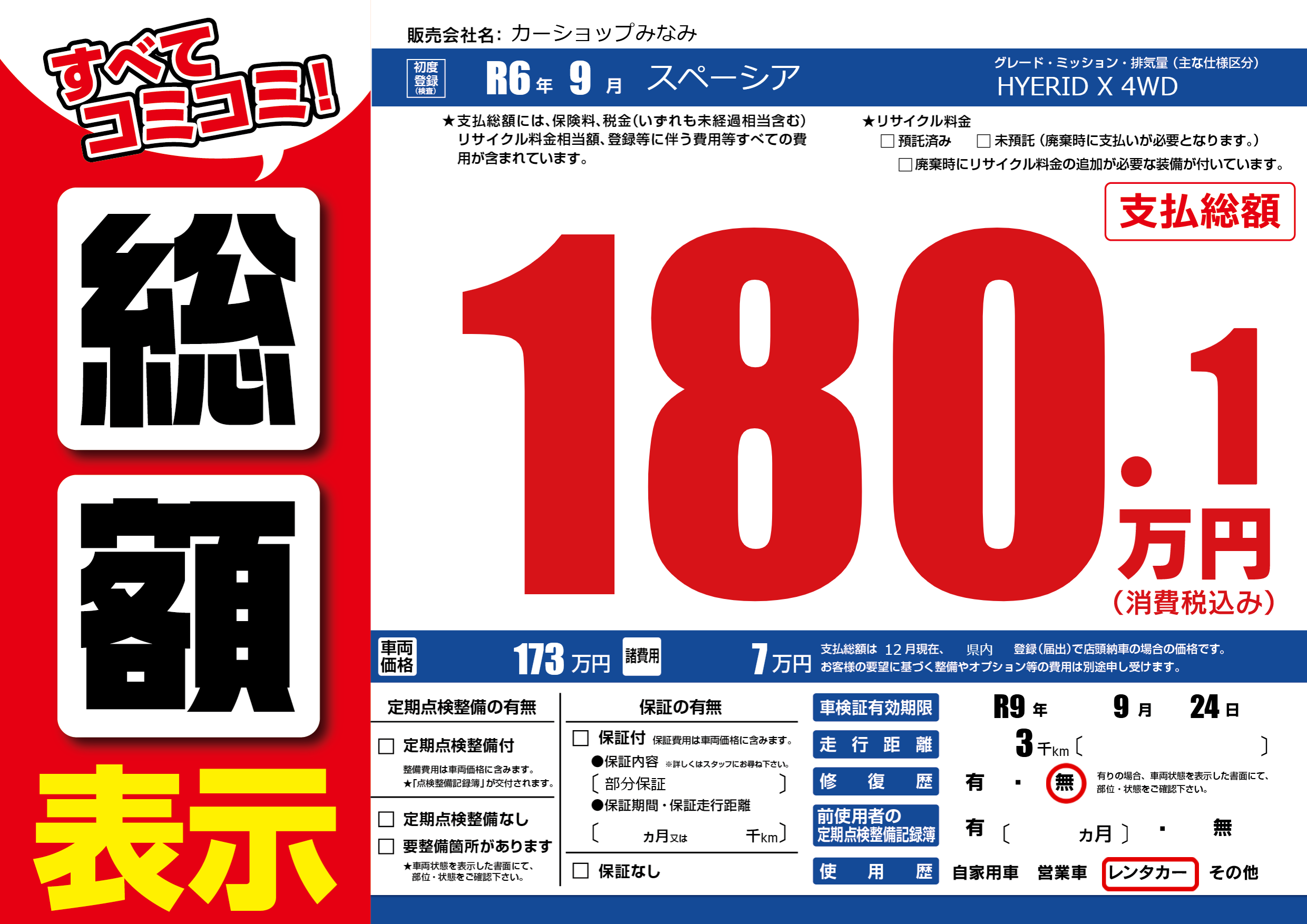 なし | 車検制限 | R9年9月24月 |