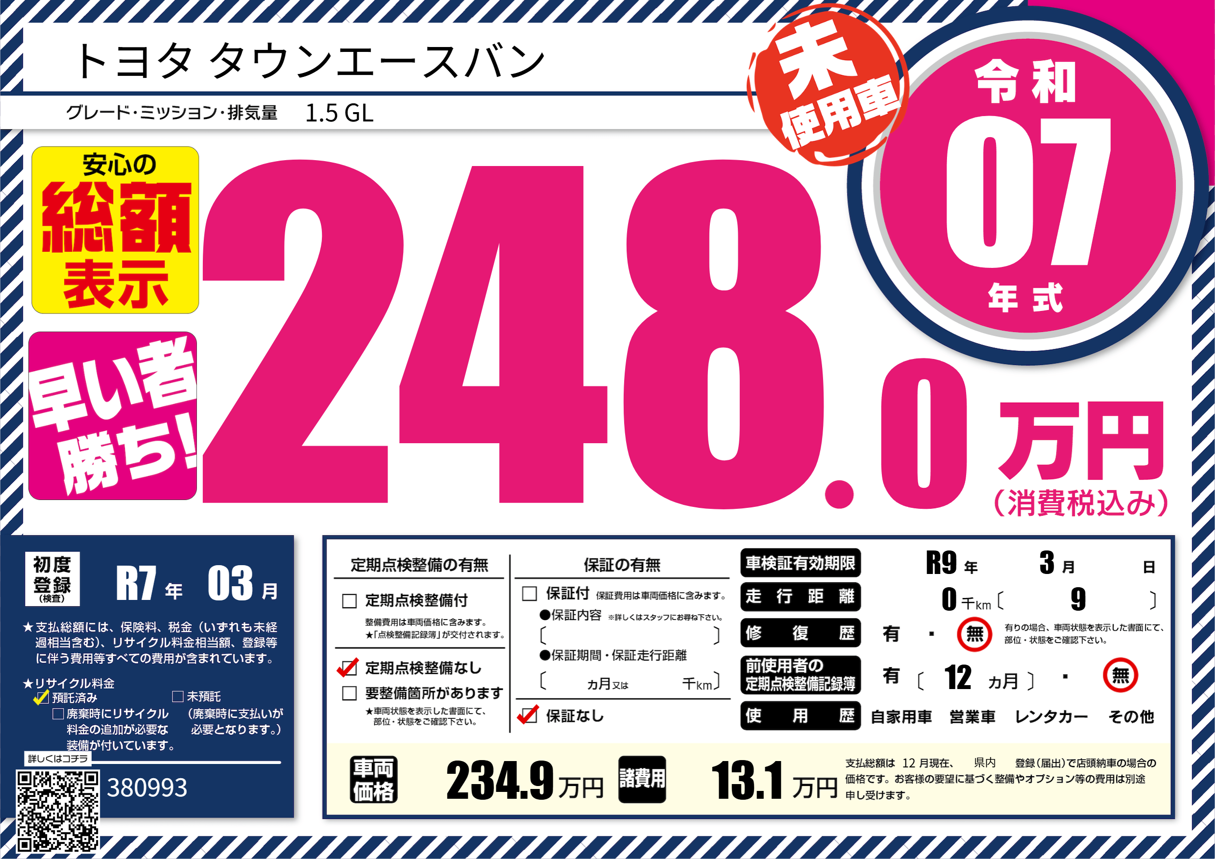 | 走行キロ | - | 初年度登録 | R7年03月 |