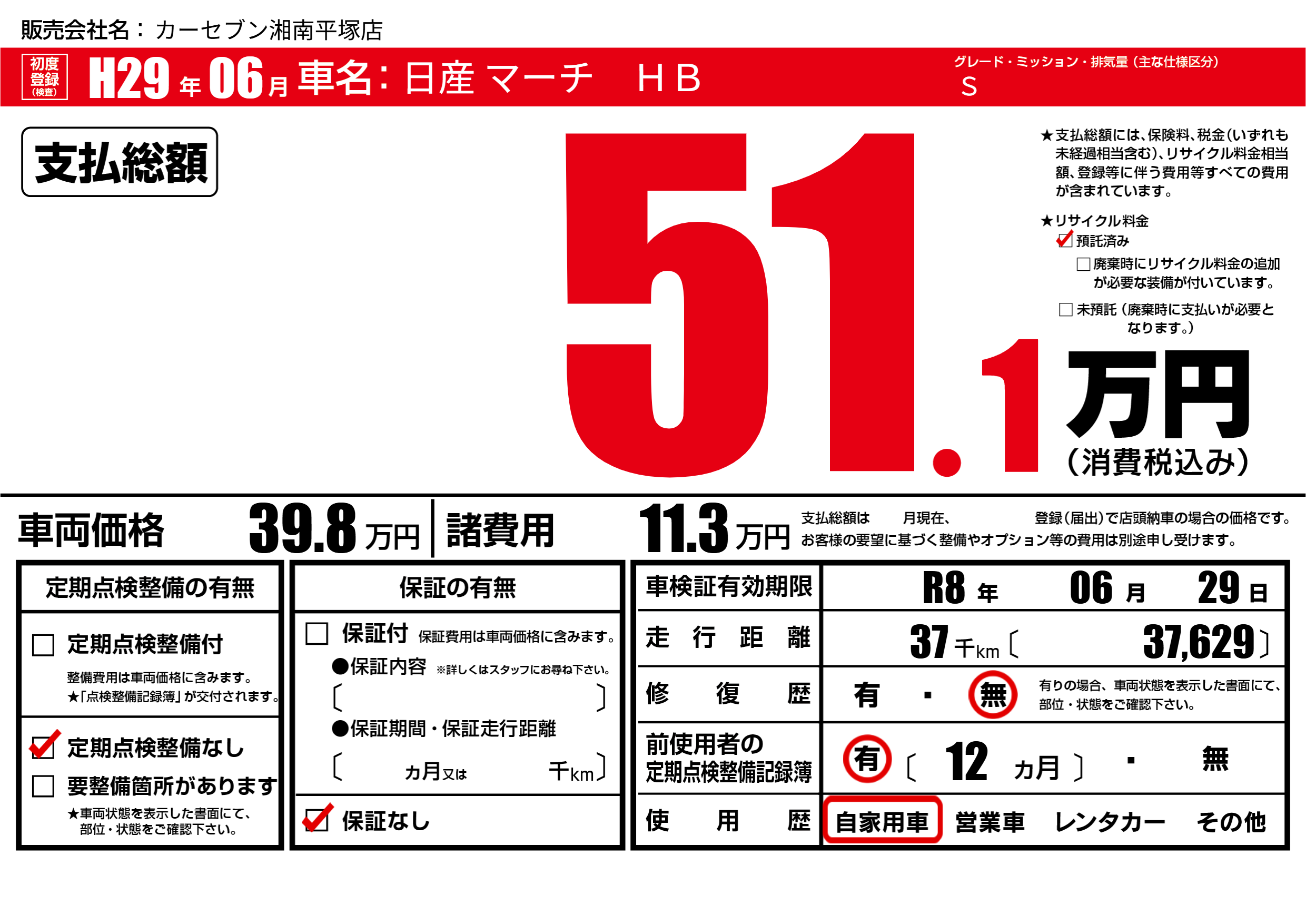 なし | 車検制限 | R8年06月29月 |