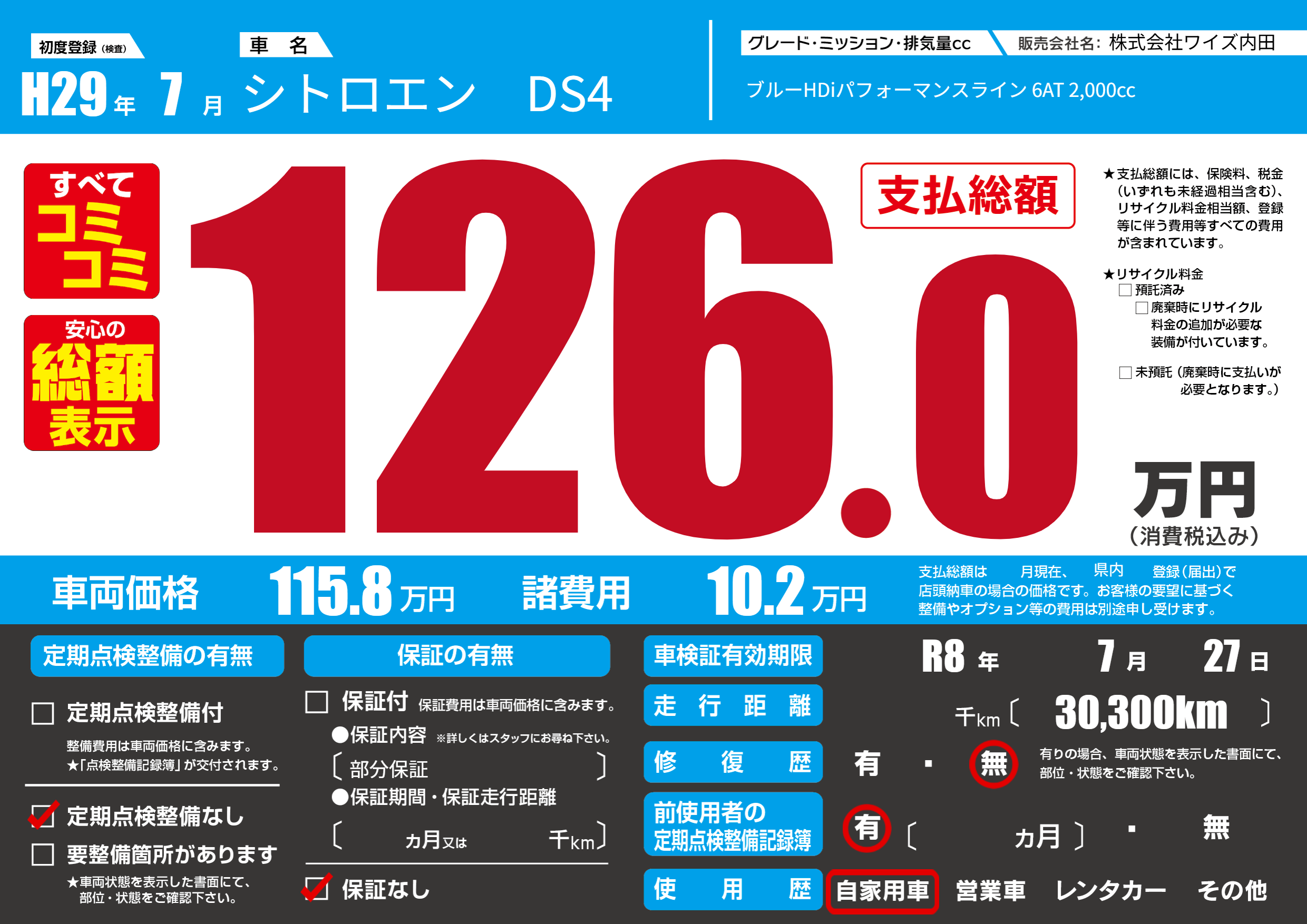 | 車名 | シトロエン DS4 | グレード ミッション 排気量 |