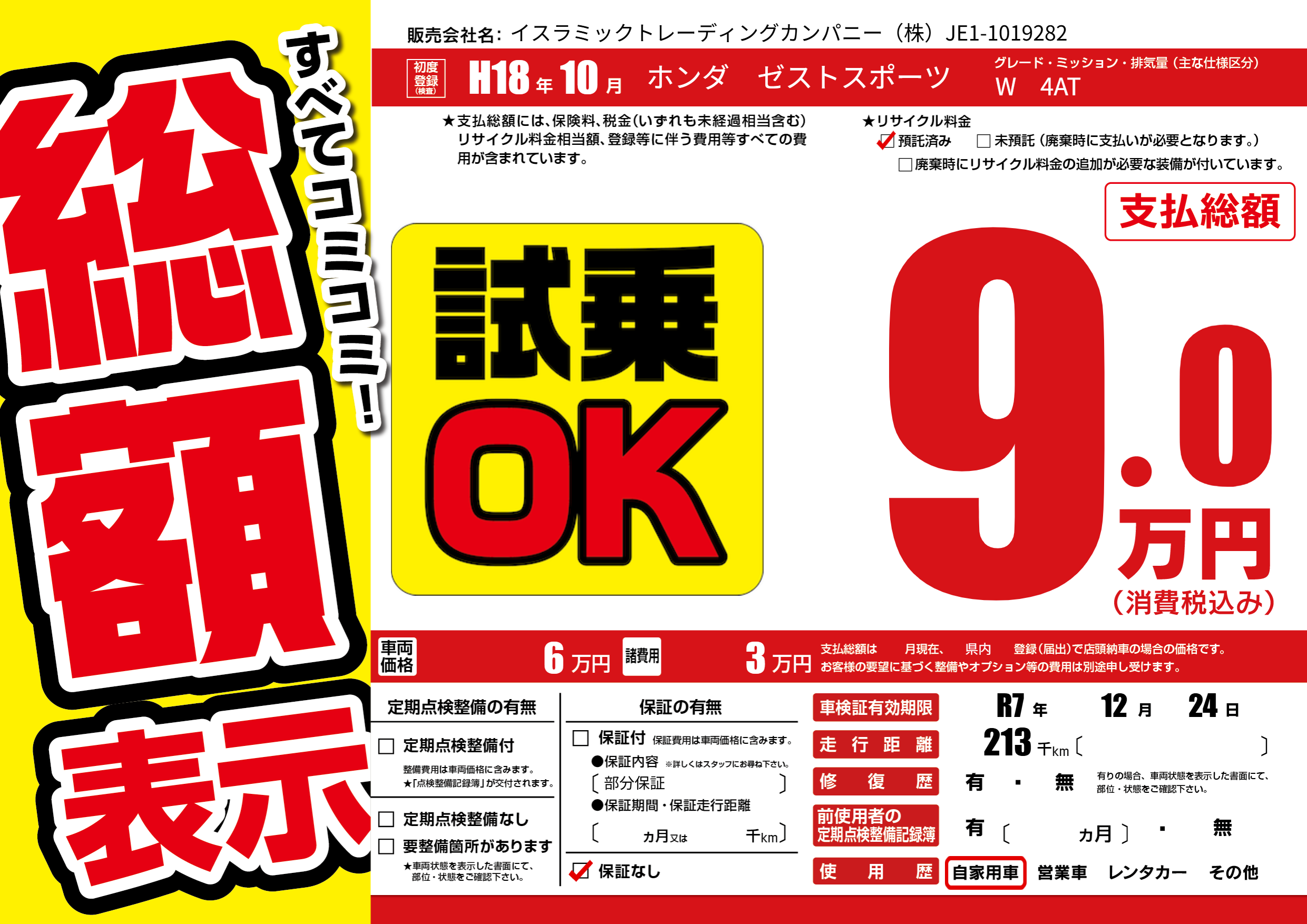 なし | 車検制限 | R7年12月24月 |