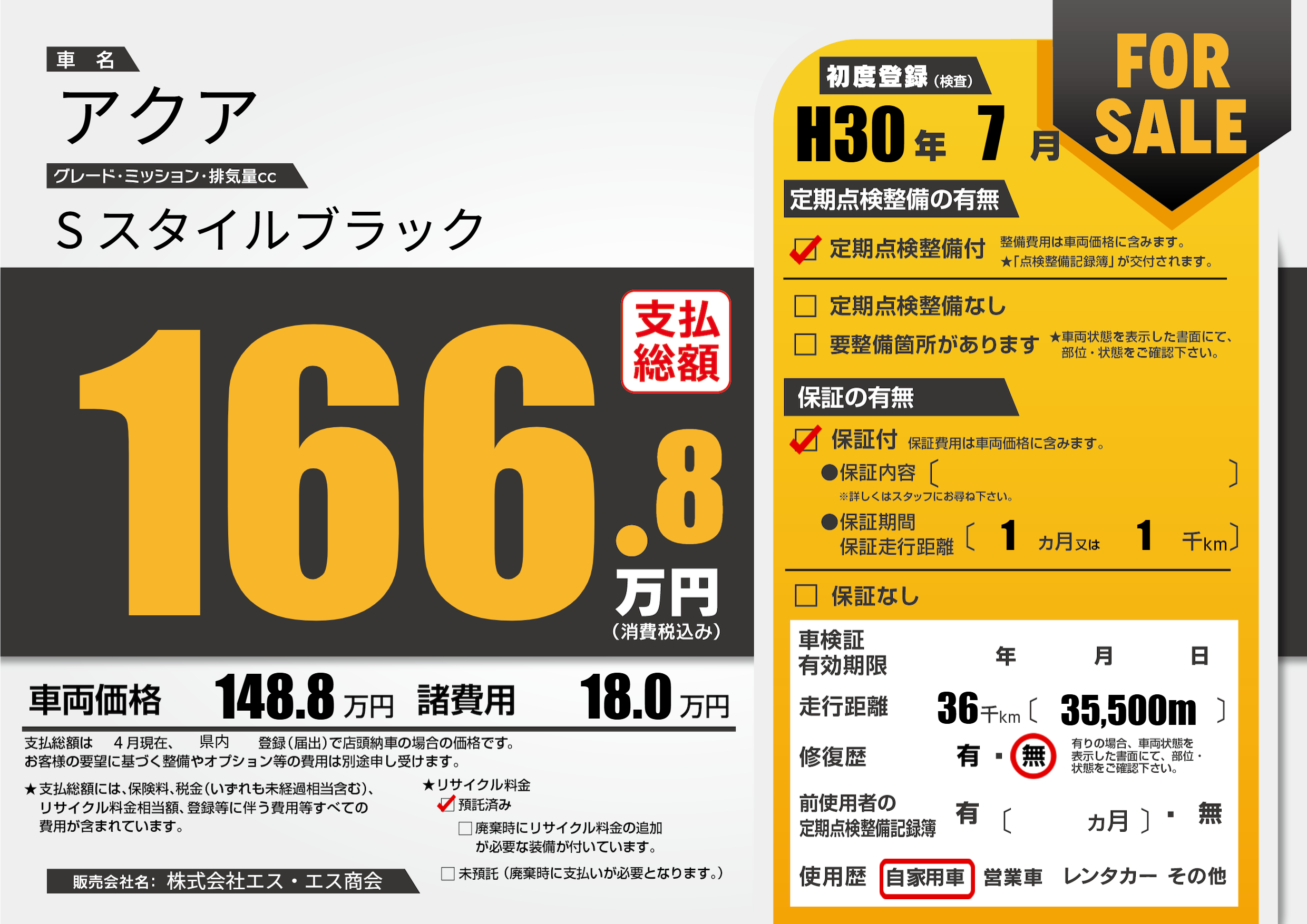 | 走行キロ | 3.6万km | 初年度登録 | H30年7月 |