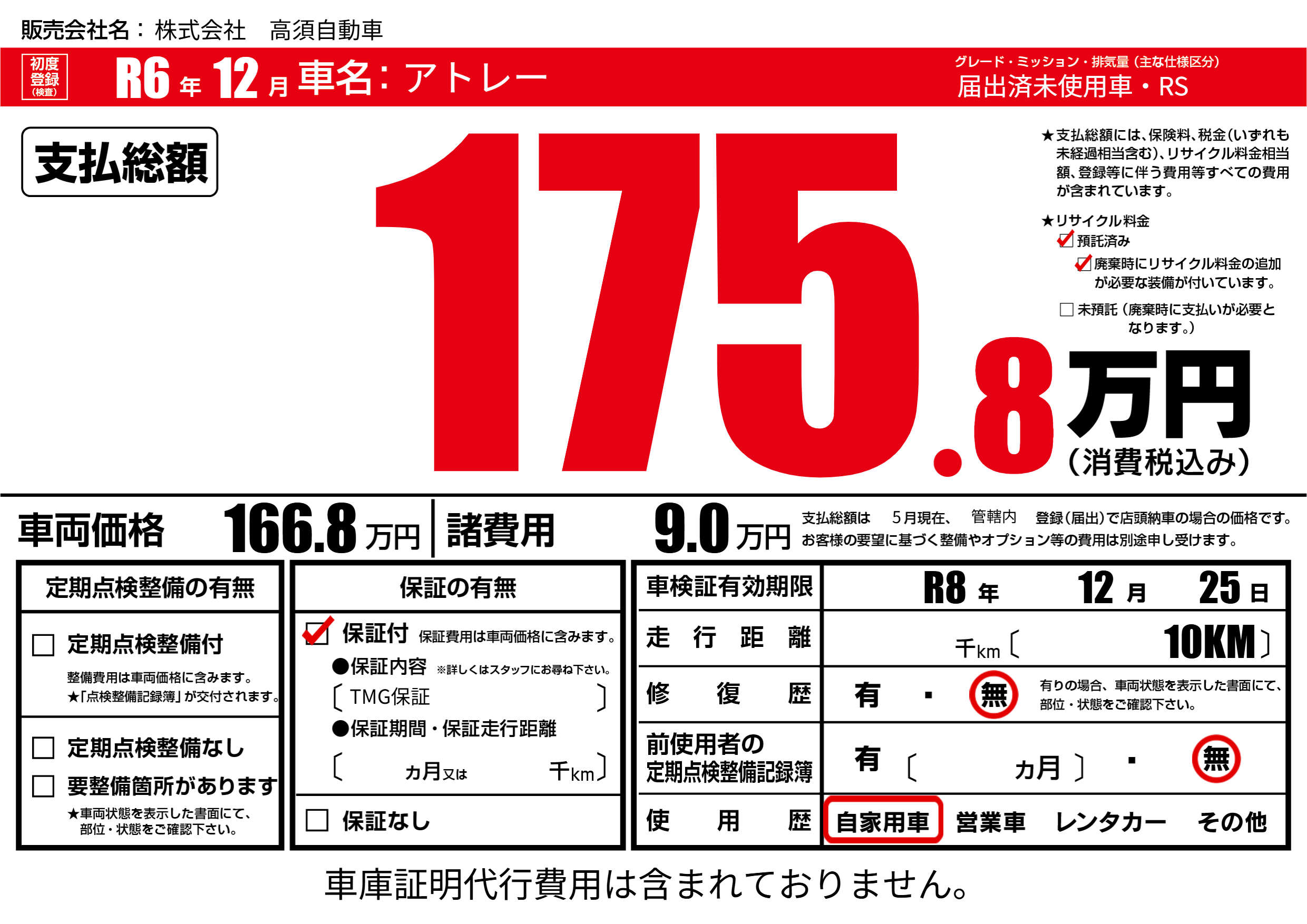 保証付き 保証内容(TMG保証) ---ヶ月または()千kmまで |
