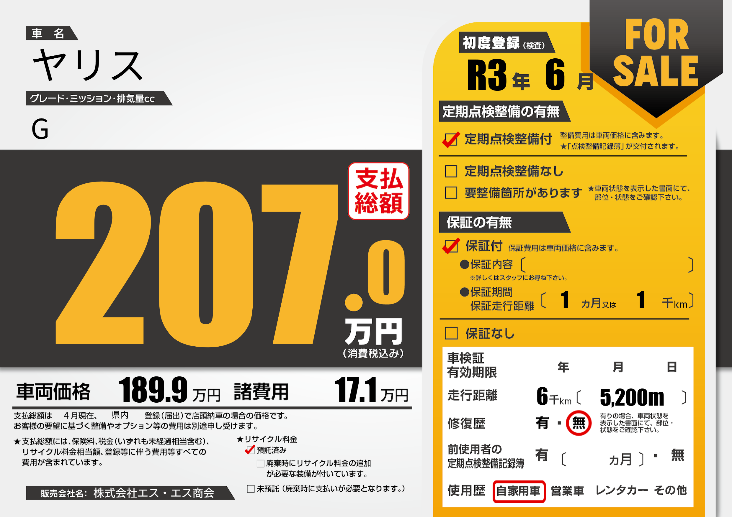 | 初年度登録 | R3年6月 | ||