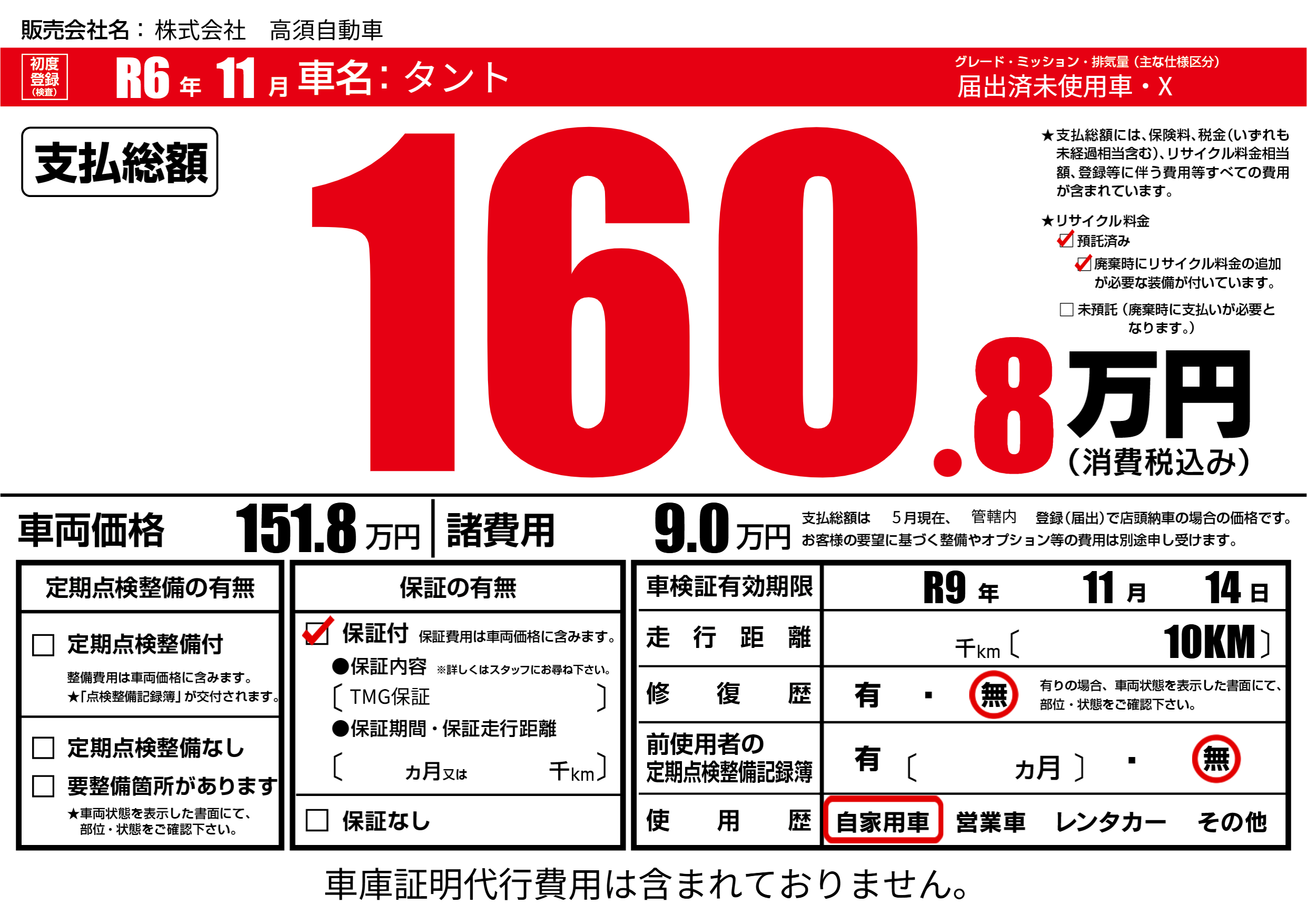 保証付き 保証内容(TMG保証) ---ヶ月または()千kmまで |